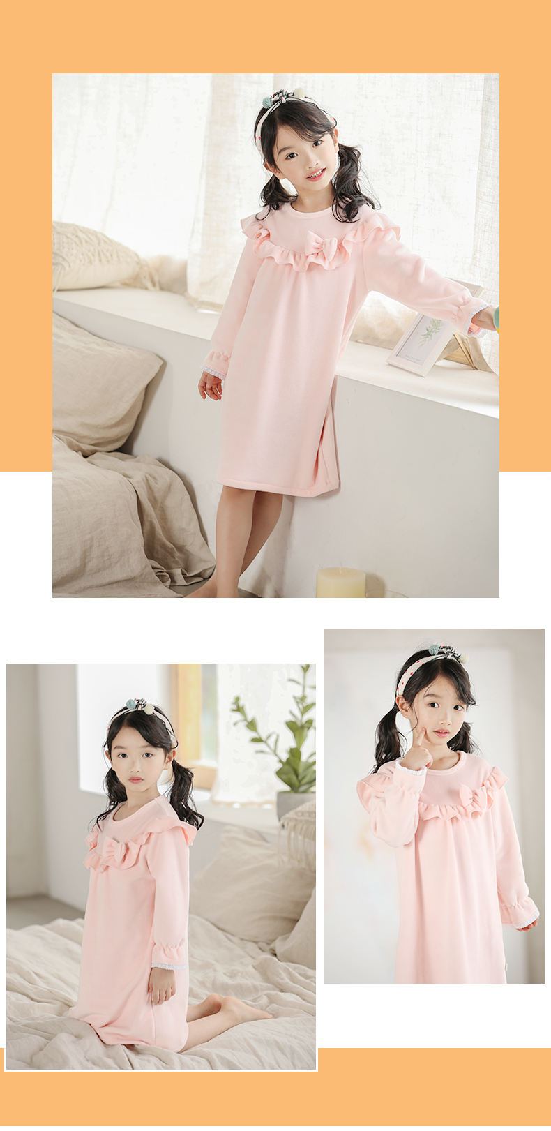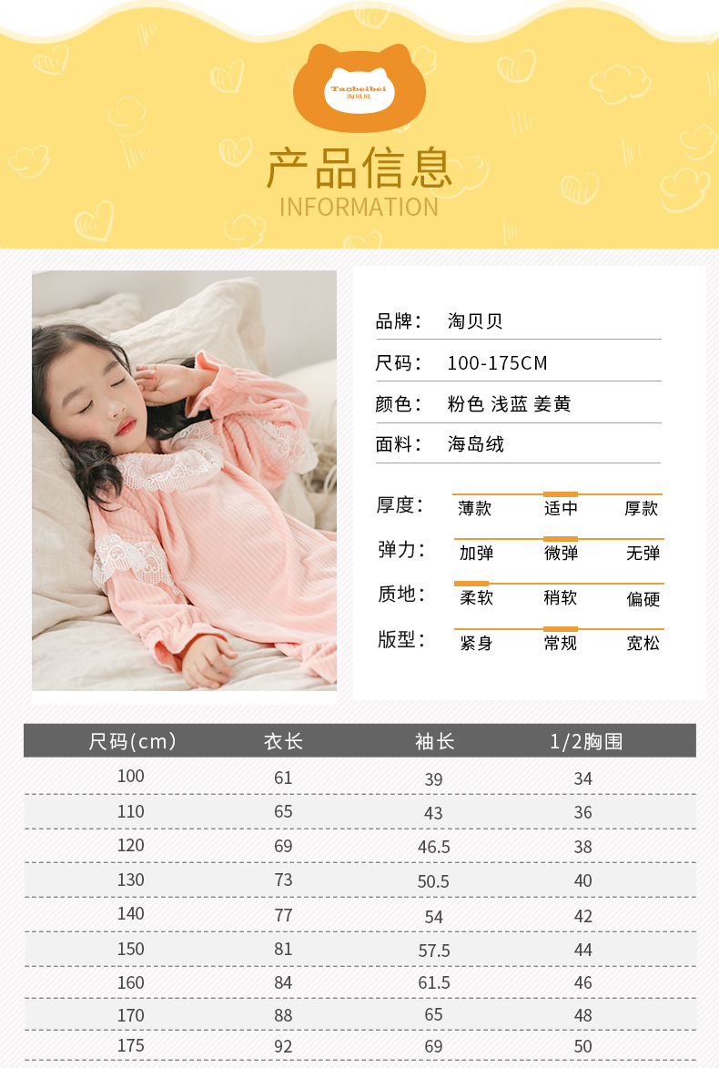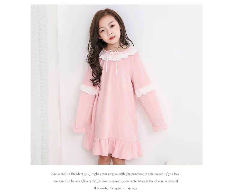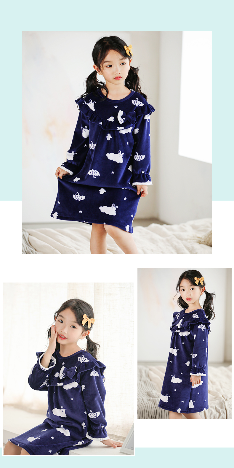 淘贝贝女童睡裙秋冬款儿童睡裙女长袖女孩法兰绒珊瑚绒睡裙公主