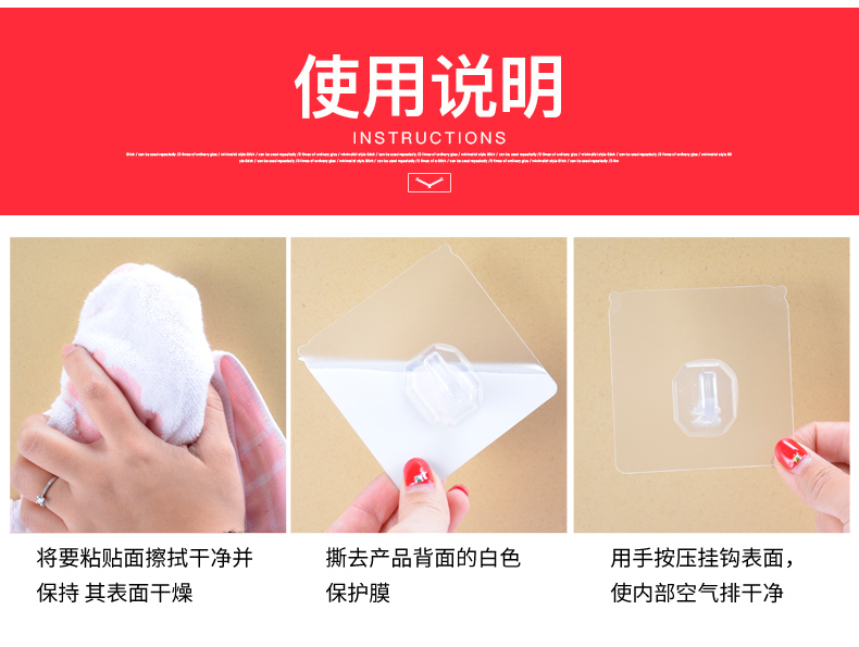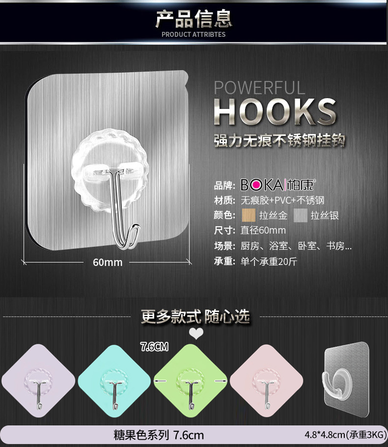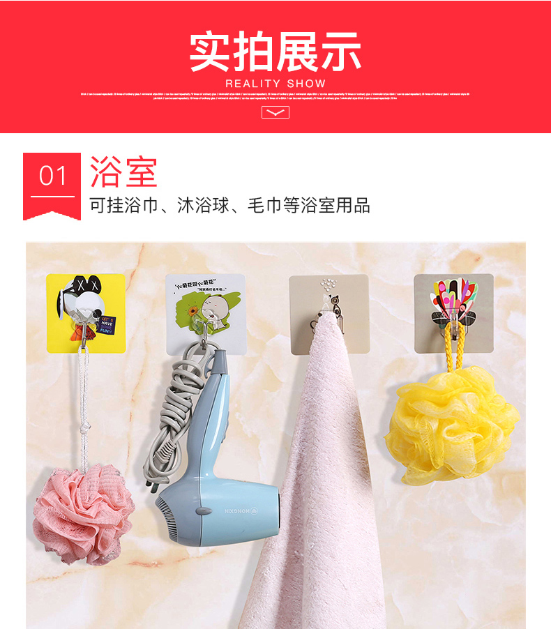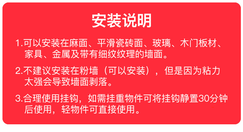 免钉,不伤墙面,超强承重,防水防油不脱落,厨房/卫生间/卧室都适用,家居必备~