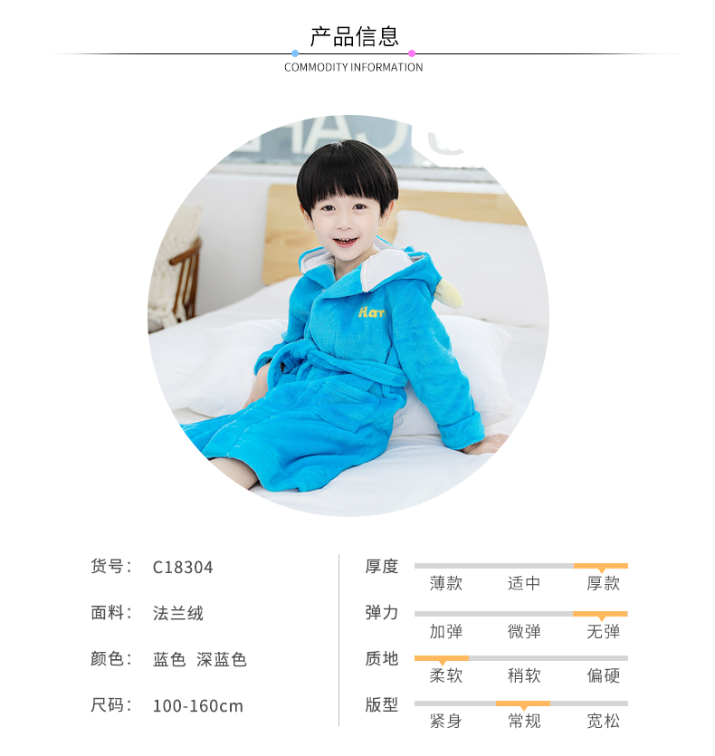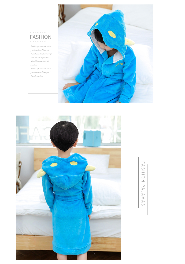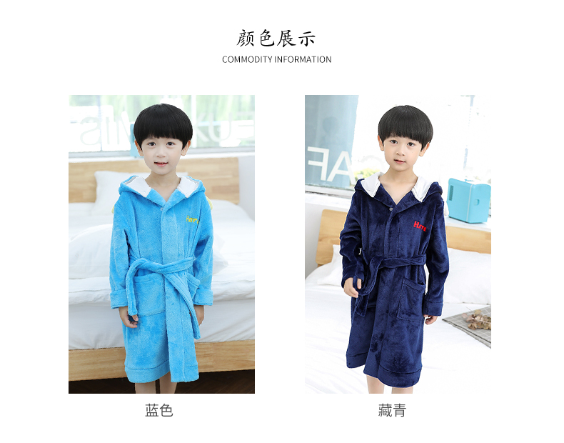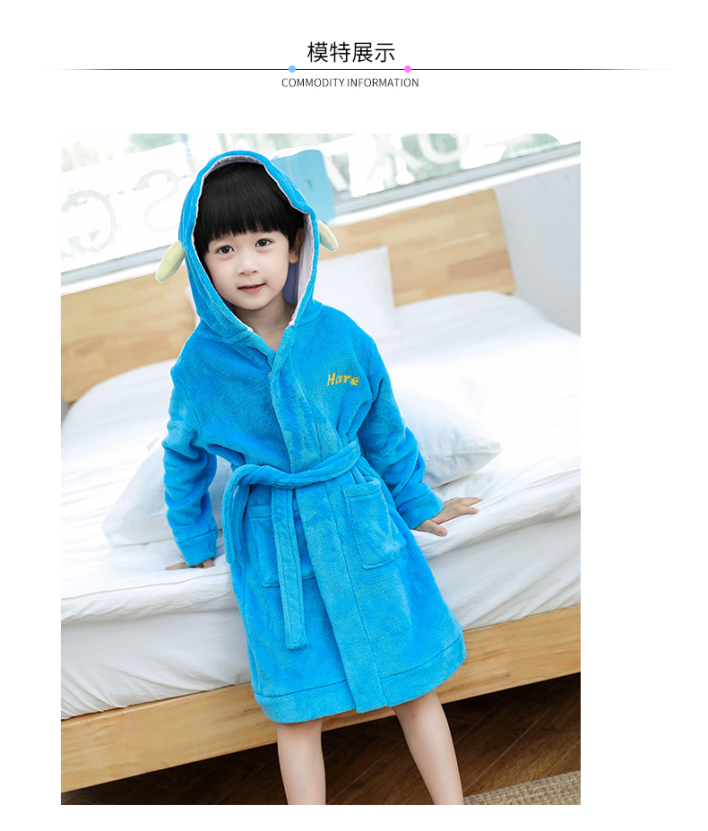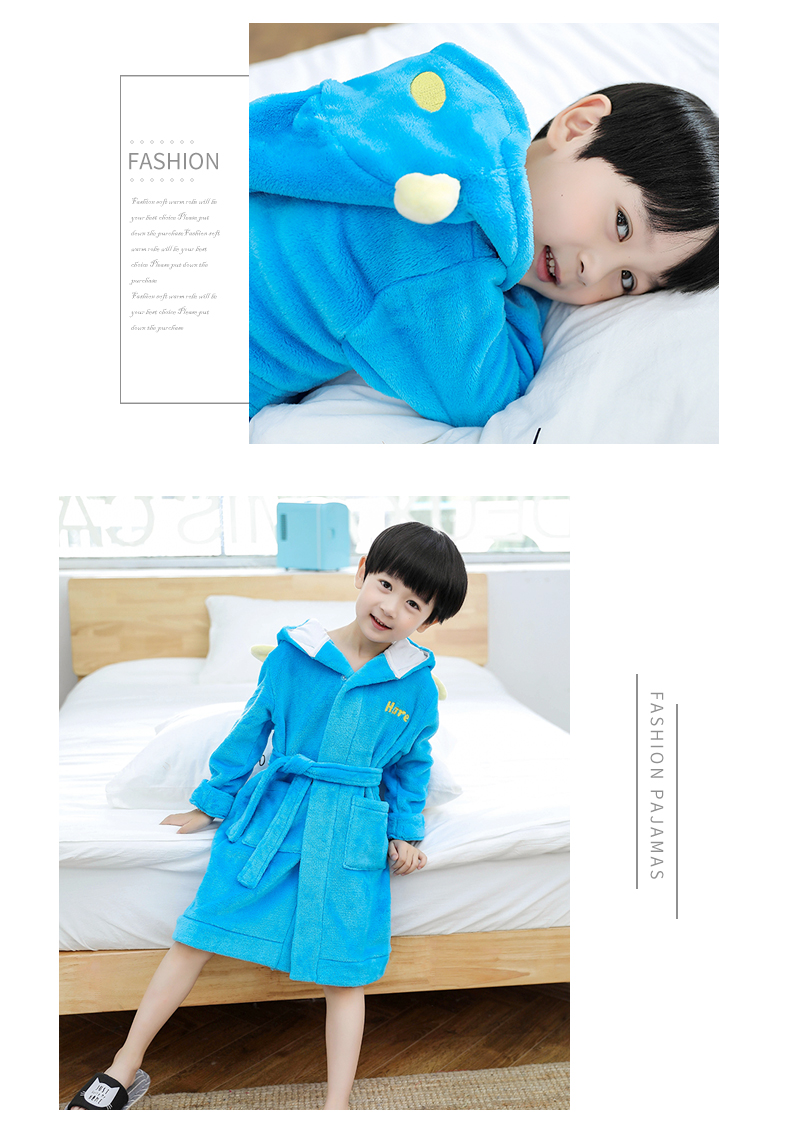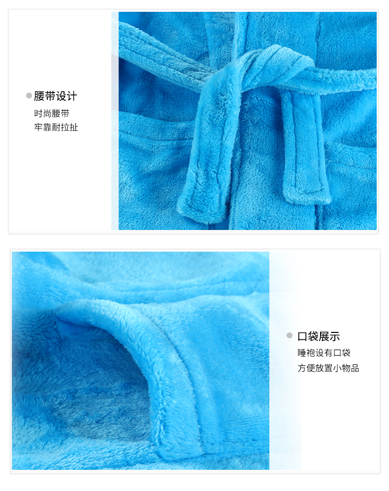 淘贝贝儿童睡袍 男孩宝宝珊瑚绒浴袍法兰绒睡袍男童带扣子秋冬