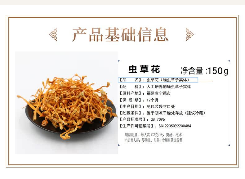 铭膳珍精选无硫虫草花金北虫干货草蛹虫草孢子头煲汤材料150g