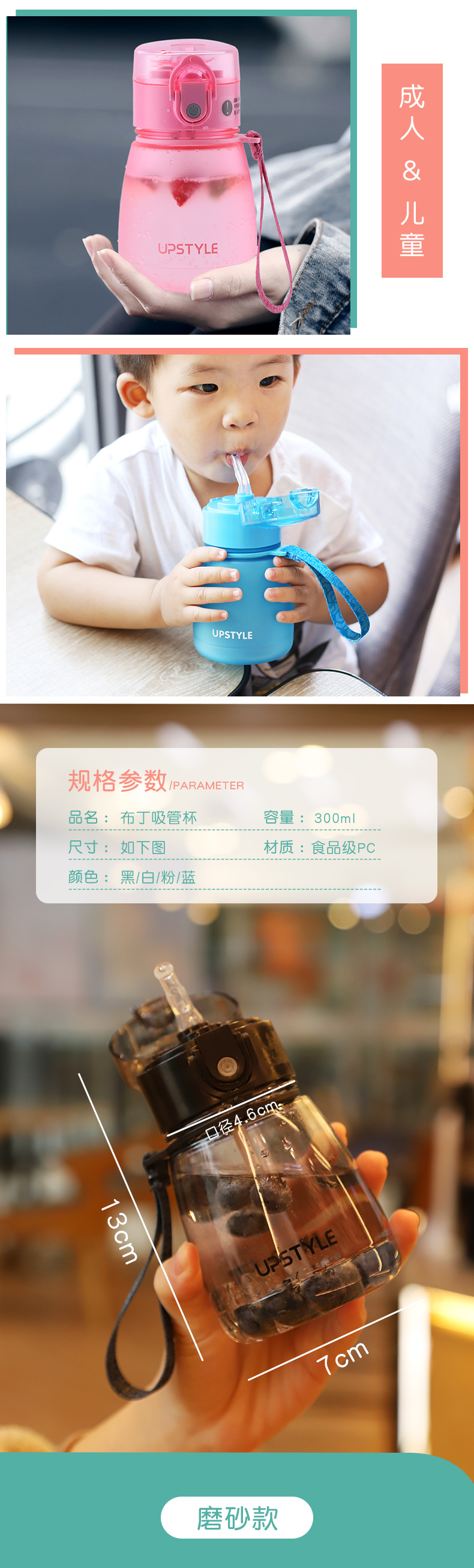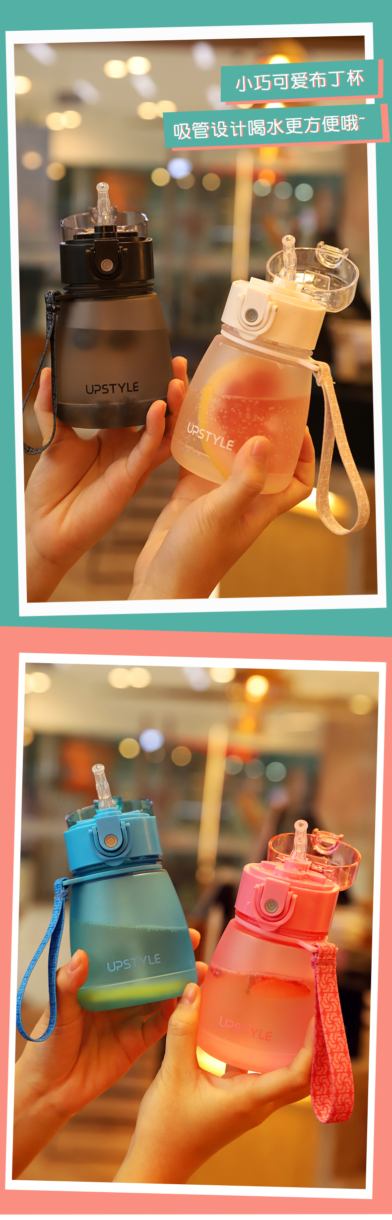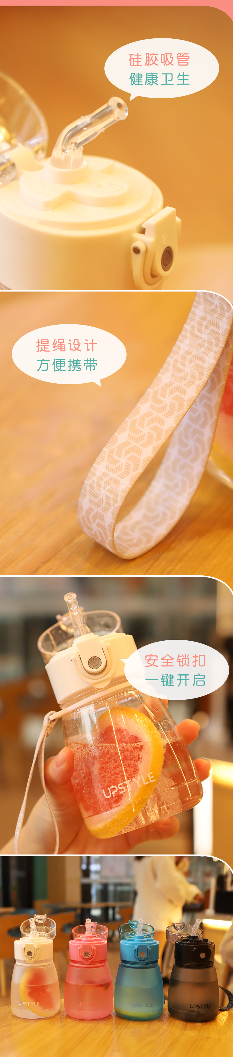 【券通用~】进口食品级PC材质!磨砂杯身,360°倒置摇晃不漏水,加厚耐摔,一键式弹盖,带吸管、带提手出门超方便!单手也可以喝水哦,有了它喝白开水都幸福感爆棚啊~