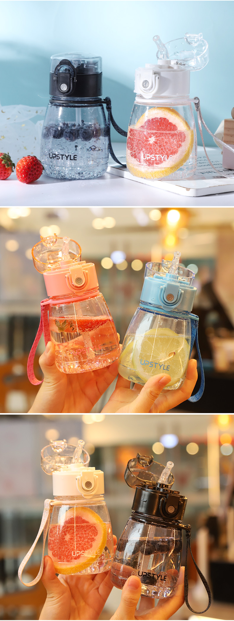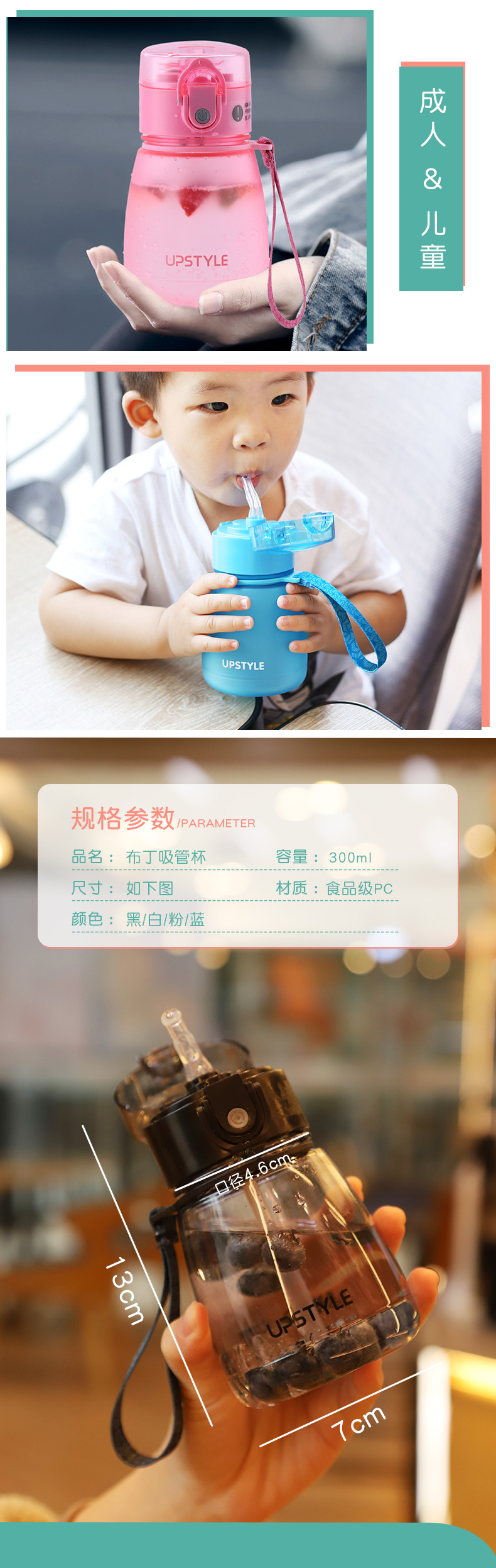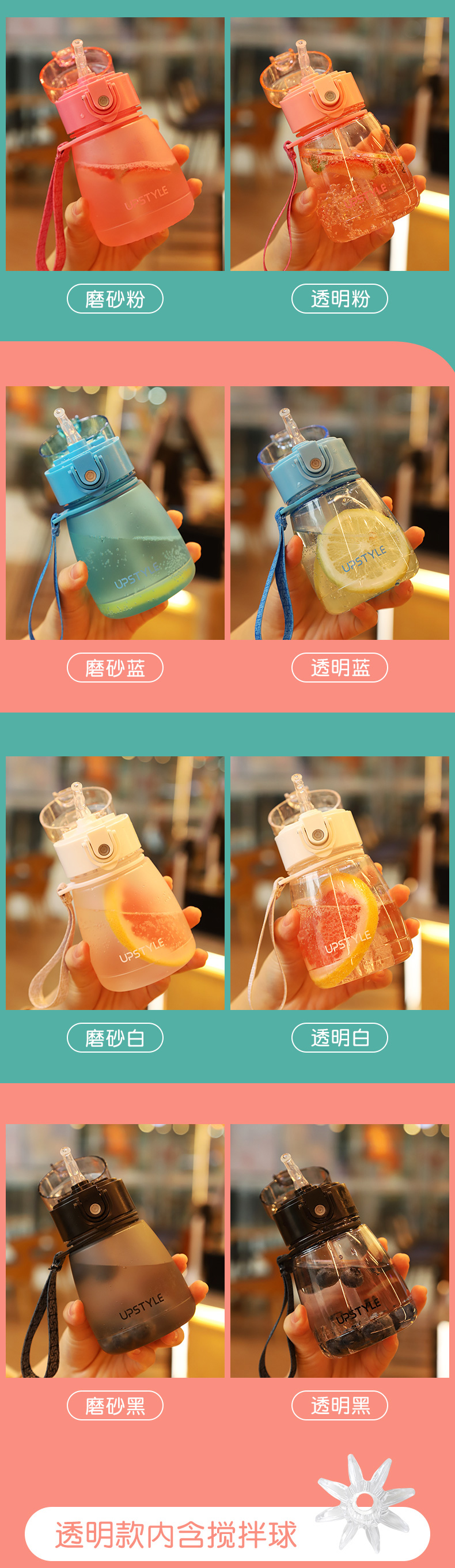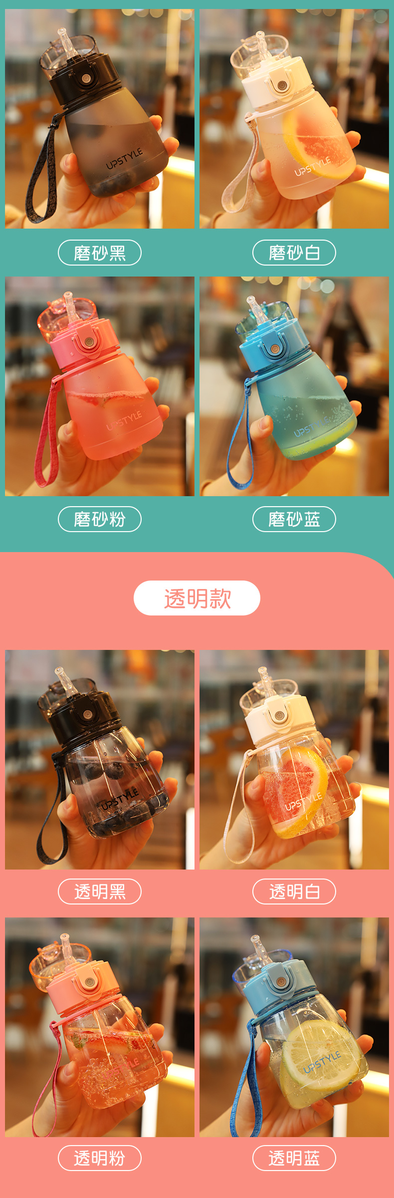 【券通用~】进口食品级PC材质!磨砂杯身,360°倒置摇晃不漏水,加厚耐摔,一键式弹盖,带吸管、带提手出门超方便!单手也可以喝水哦,有了它喝白开水都幸福感爆棚啊~
