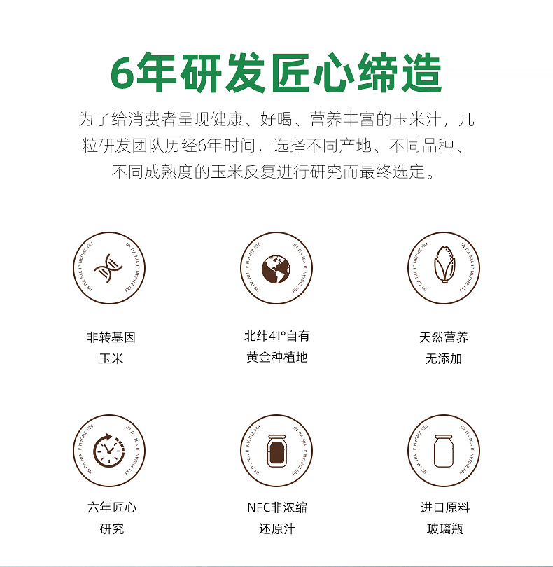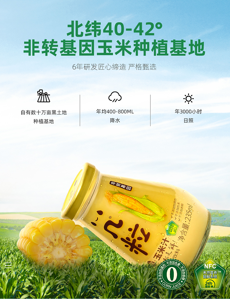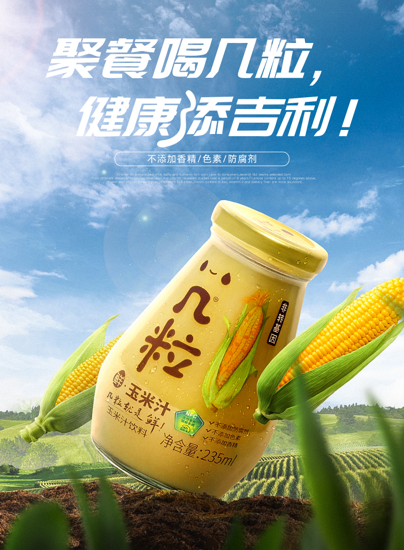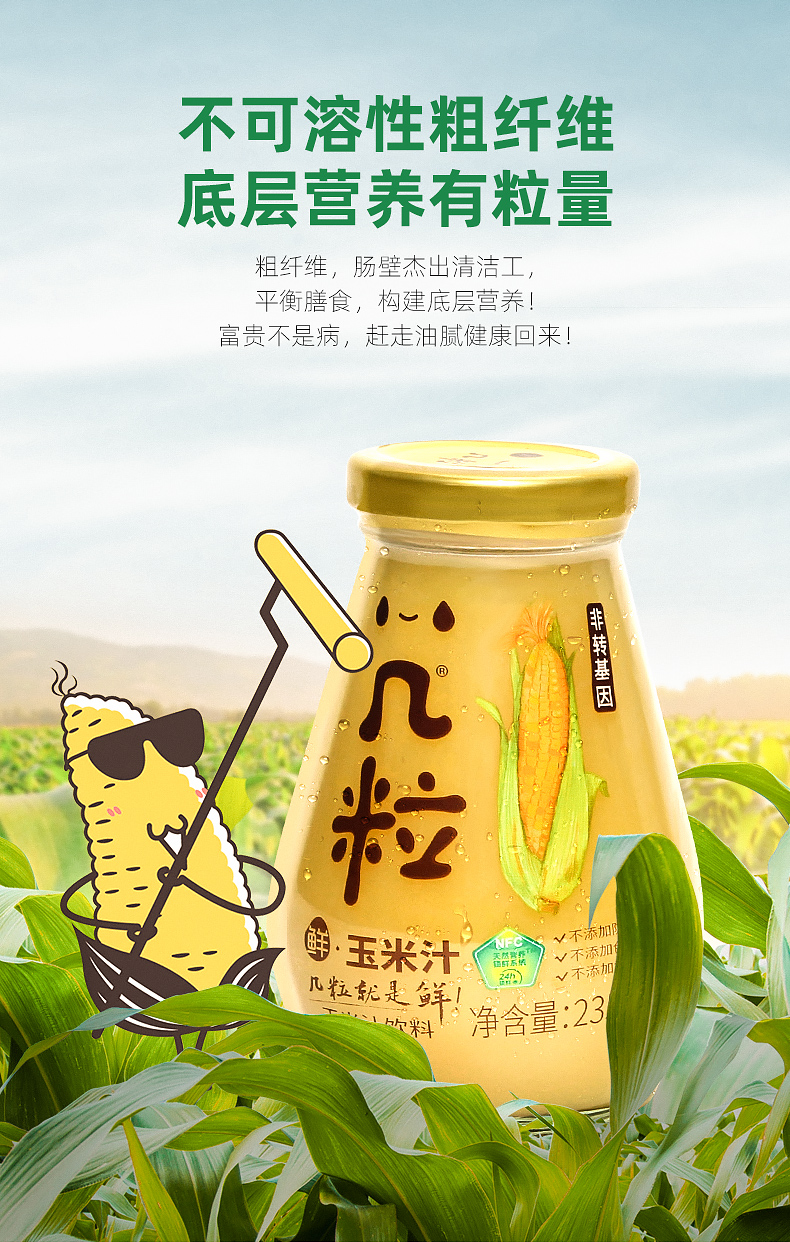 几粒NFC鲜玉米汁饮料235ml-6胖瓶装,魔芋粉+白砂糖+鲜玉米+水,味道鲜美,日期新鲜,天然营养,包装讲究,安全放心【赠运险费】