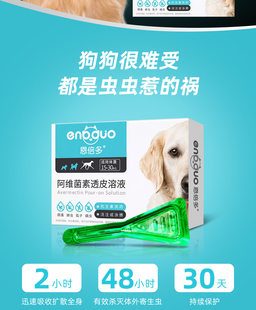 恩倍多宠物狗体外驱虫滴剂药祛跳蚤除虱子蜱虫外用大型犬金毛包邮