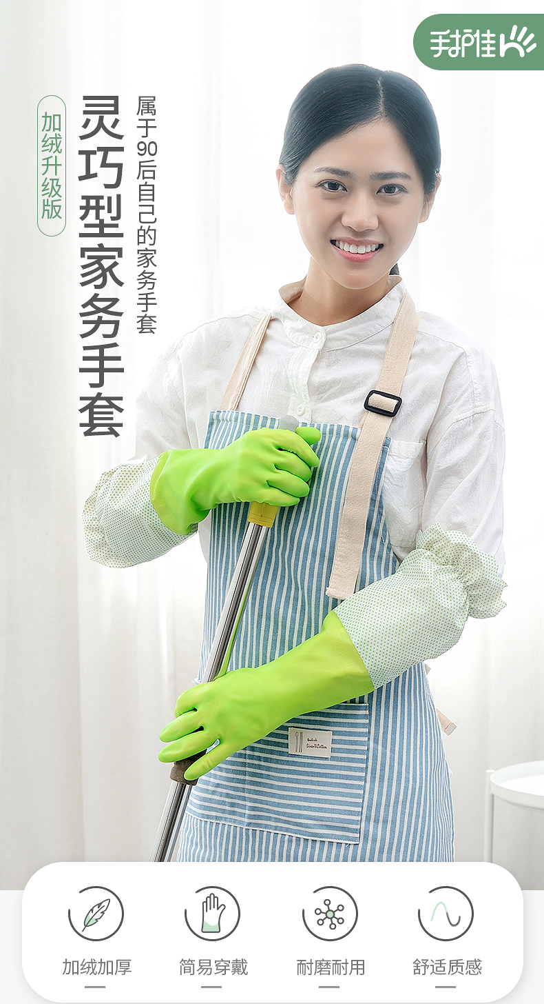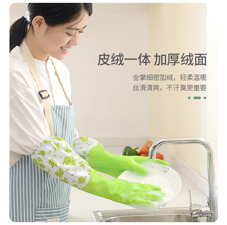 厨房家务洗碗手套清洁防水加绒皮洗衣劳保橡胶加长耐用防滑薄秋冬