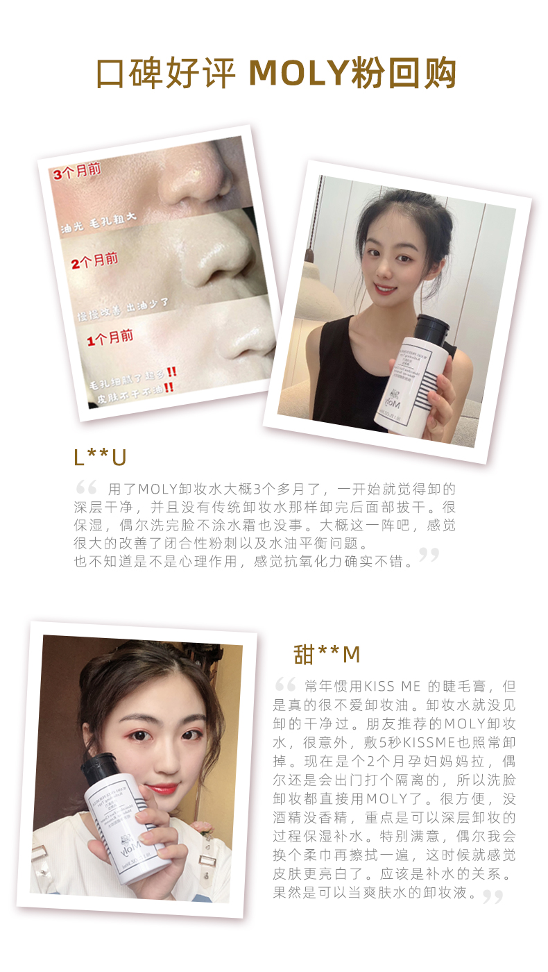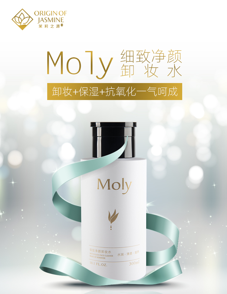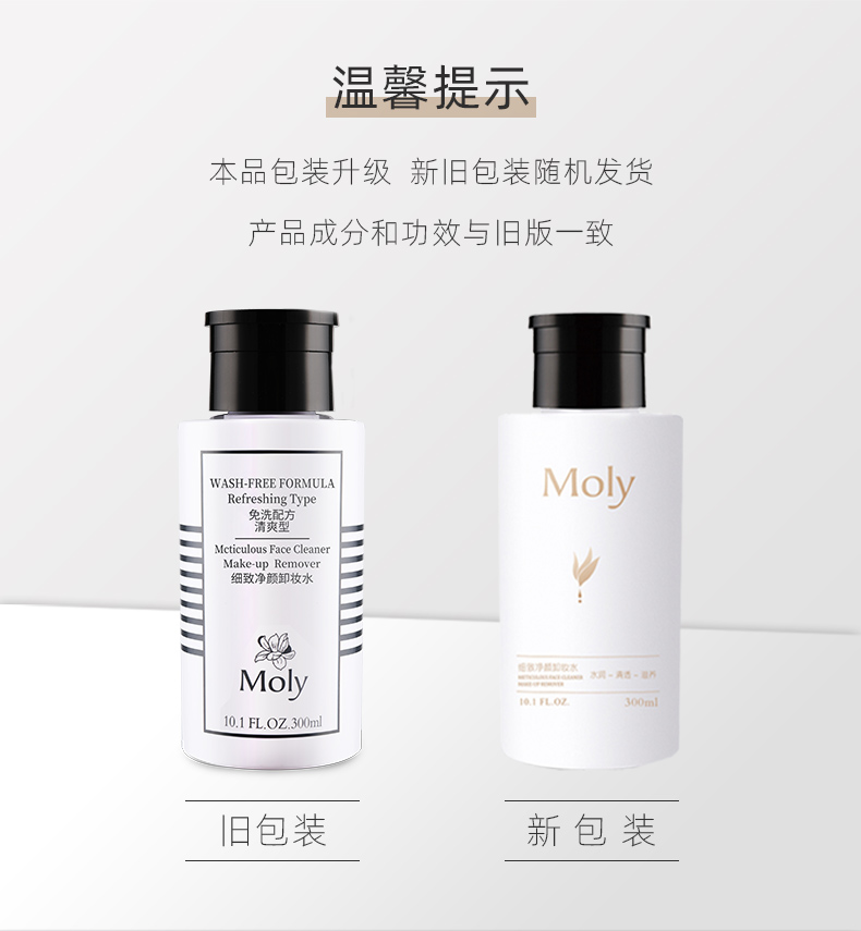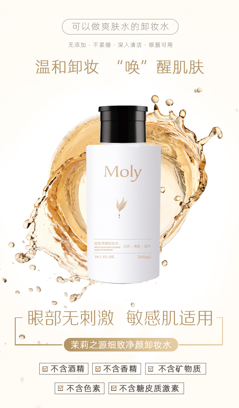 Moly茉莉之源毛孔级清洁卸妆水温和不刺激眼唇脸三合一按压瓶卸妆