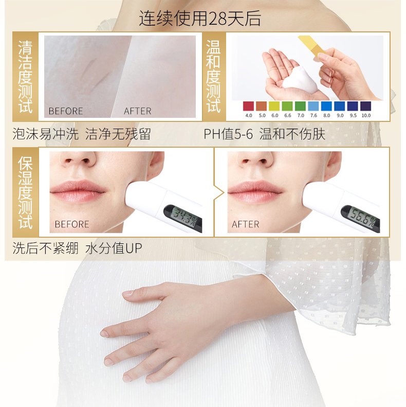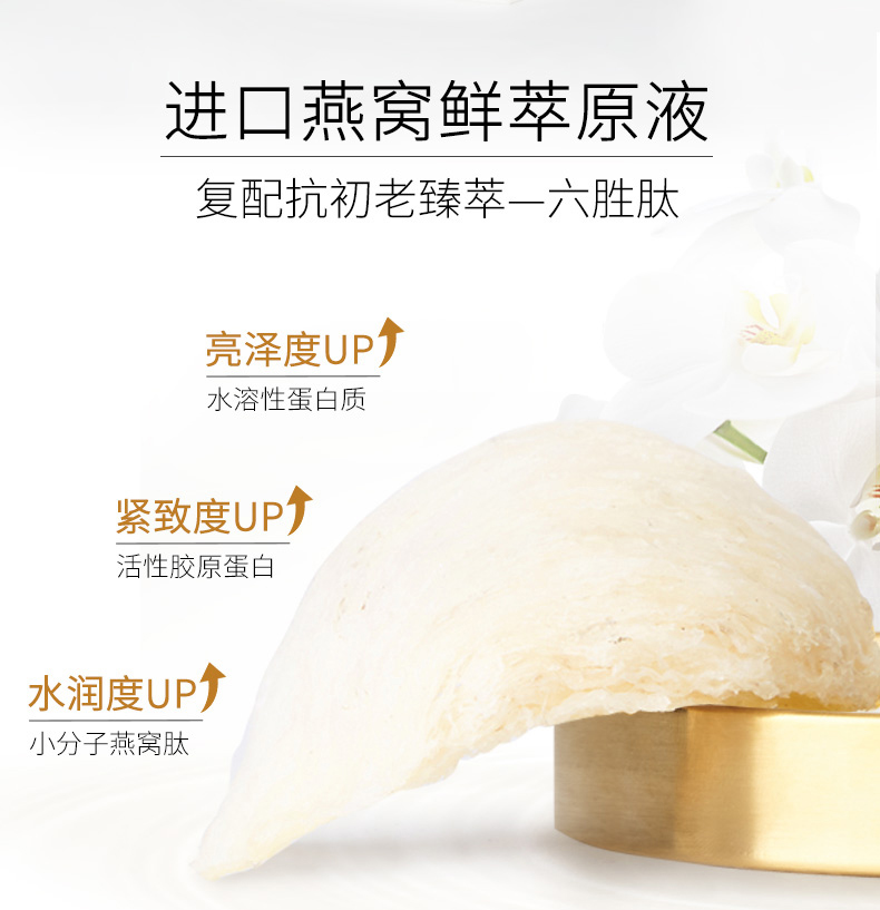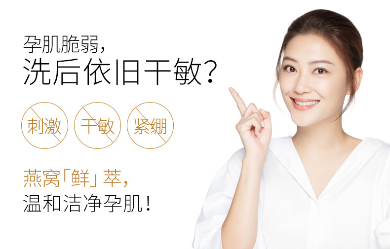 进口燕窝鲜萃原液,活性胶原蛋白,提高紧致度。氨基酸配方,洁面更温和,洗后不紧绷,敏感肌也可使用。