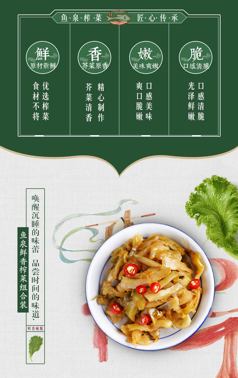 重庆特产 鱼泉榨菜 鲜香榨菜15g*30袋 咸菜 下饭菜袋装 榨菜丝