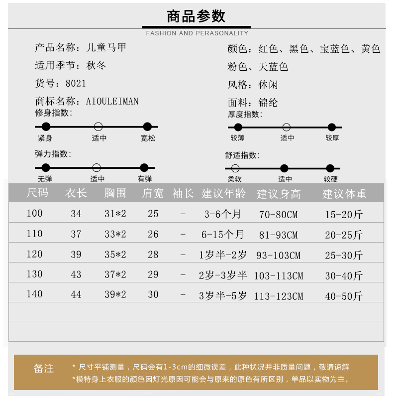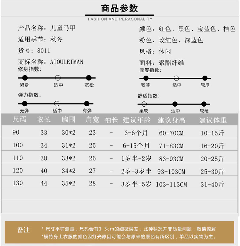 aiouleiman儿童羽绒棉马甲宝宝坎肩男童女童背心婴儿保暖内胆棉衣