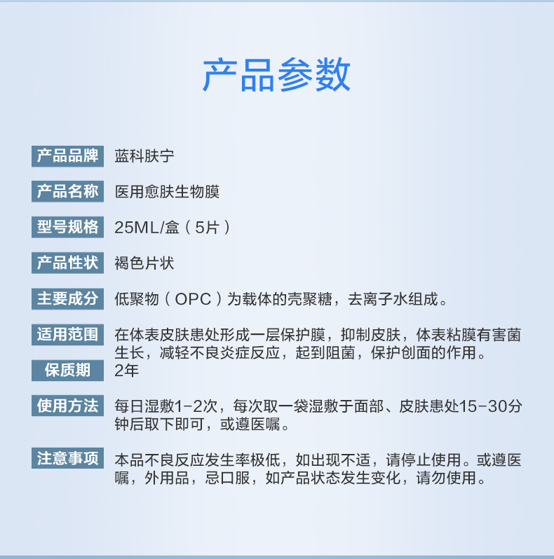 蓝科肤宁医用面膜 蓝润愈肤生物膜术后修复痘痘敏感肌医美面膜JF2
