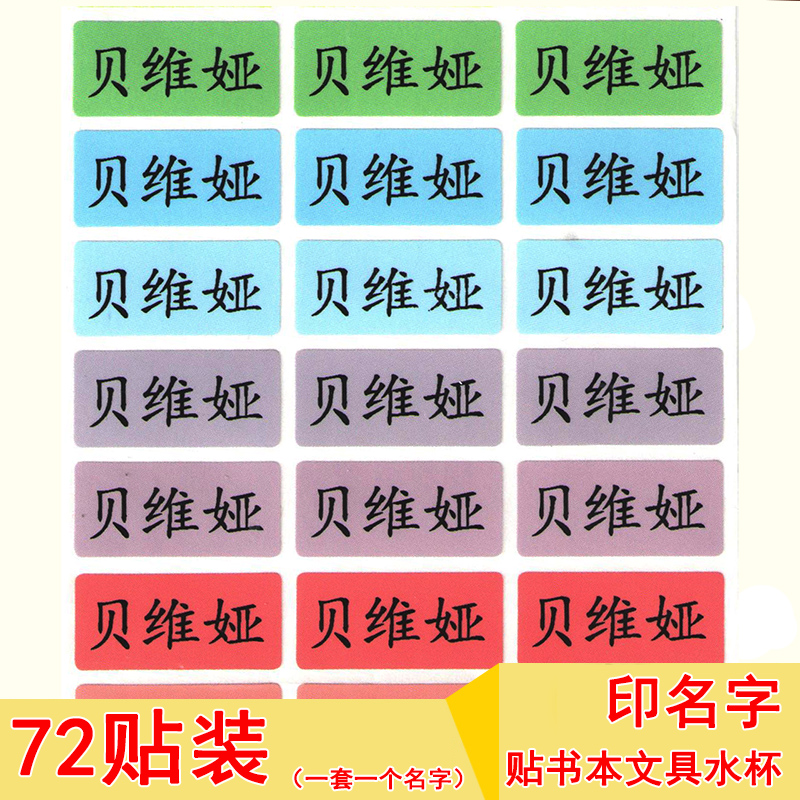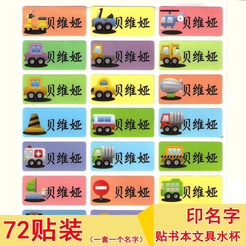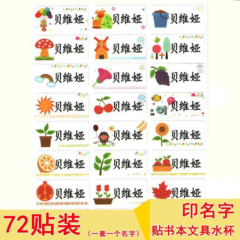 姓名贴纸72贴即撕即贴文具贴名字贴纸水杯餐具宝宝标签贴儿童入托