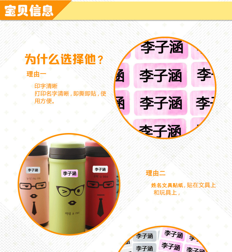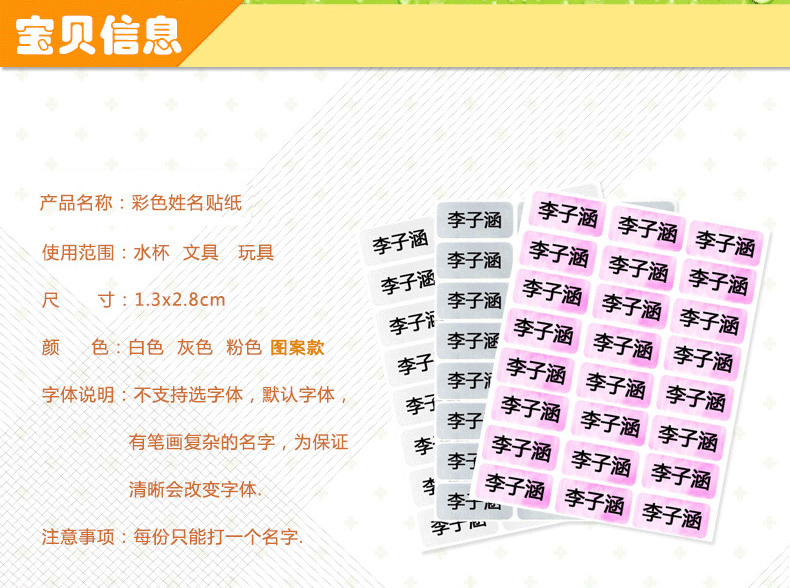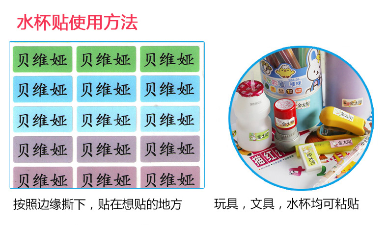 【宝贝上学必备】防水姓名贴,即撕即贴,小巧方便,可以贴在任意物品上,如书本文具水杯,轻松辨识自己的东西~