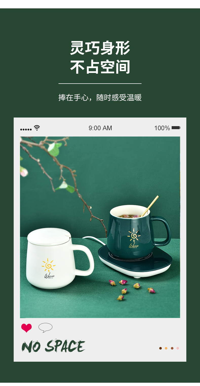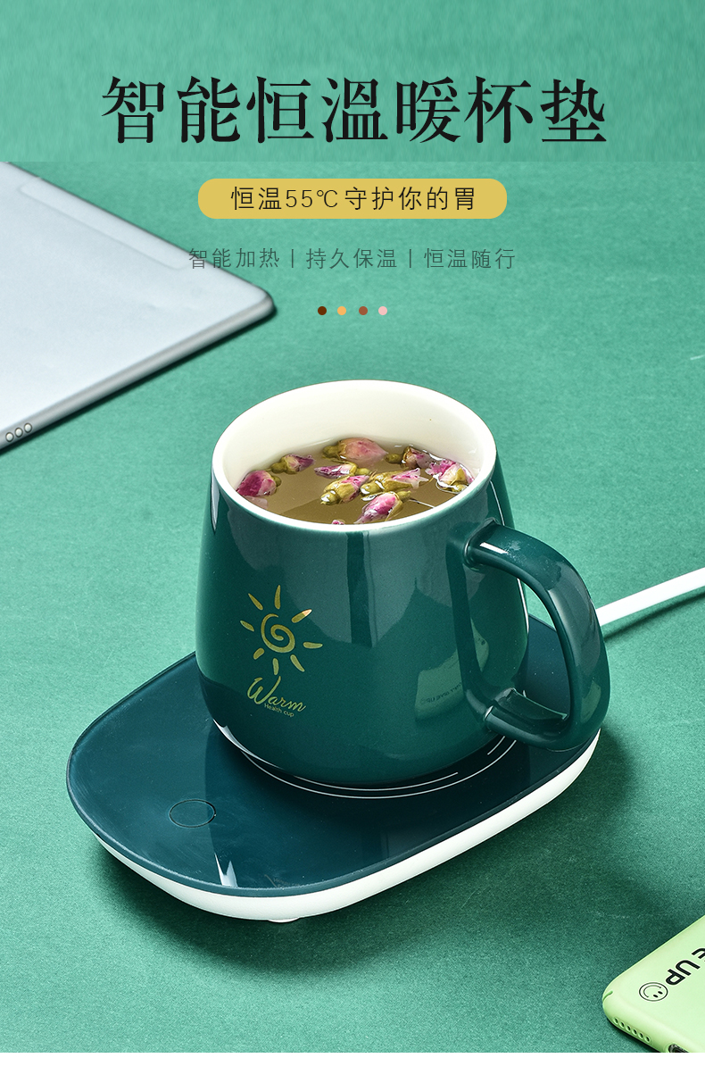 旗舰店品牌,黑科技,高biger!喝一杯“永”不冷的咖啡和牛奶或热水!放在上面触摸控制自动加热,全天保持55℃恒温,不烫不凉刚刚好,随时喝到暖暖的温水~轻薄便携,百搭各种杯型!