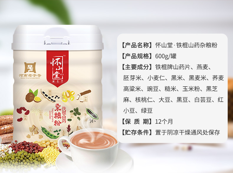 怀山堂铁棍山药五谷杂粮粉600g 怀山粉粗粮代餐粉饱腹早餐淮山药