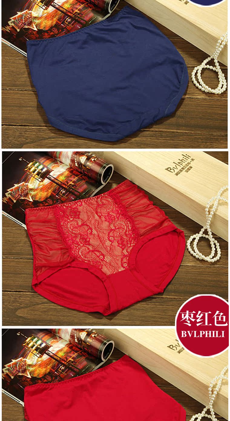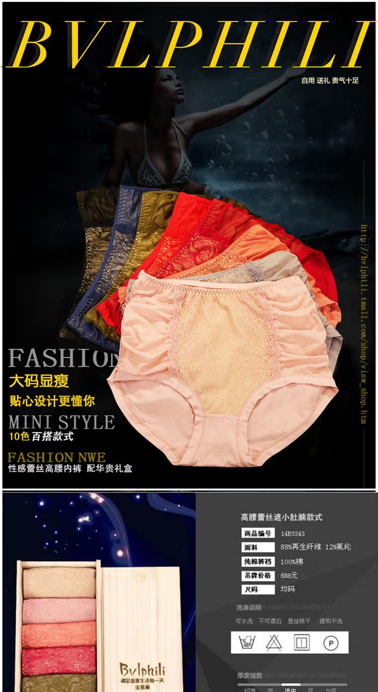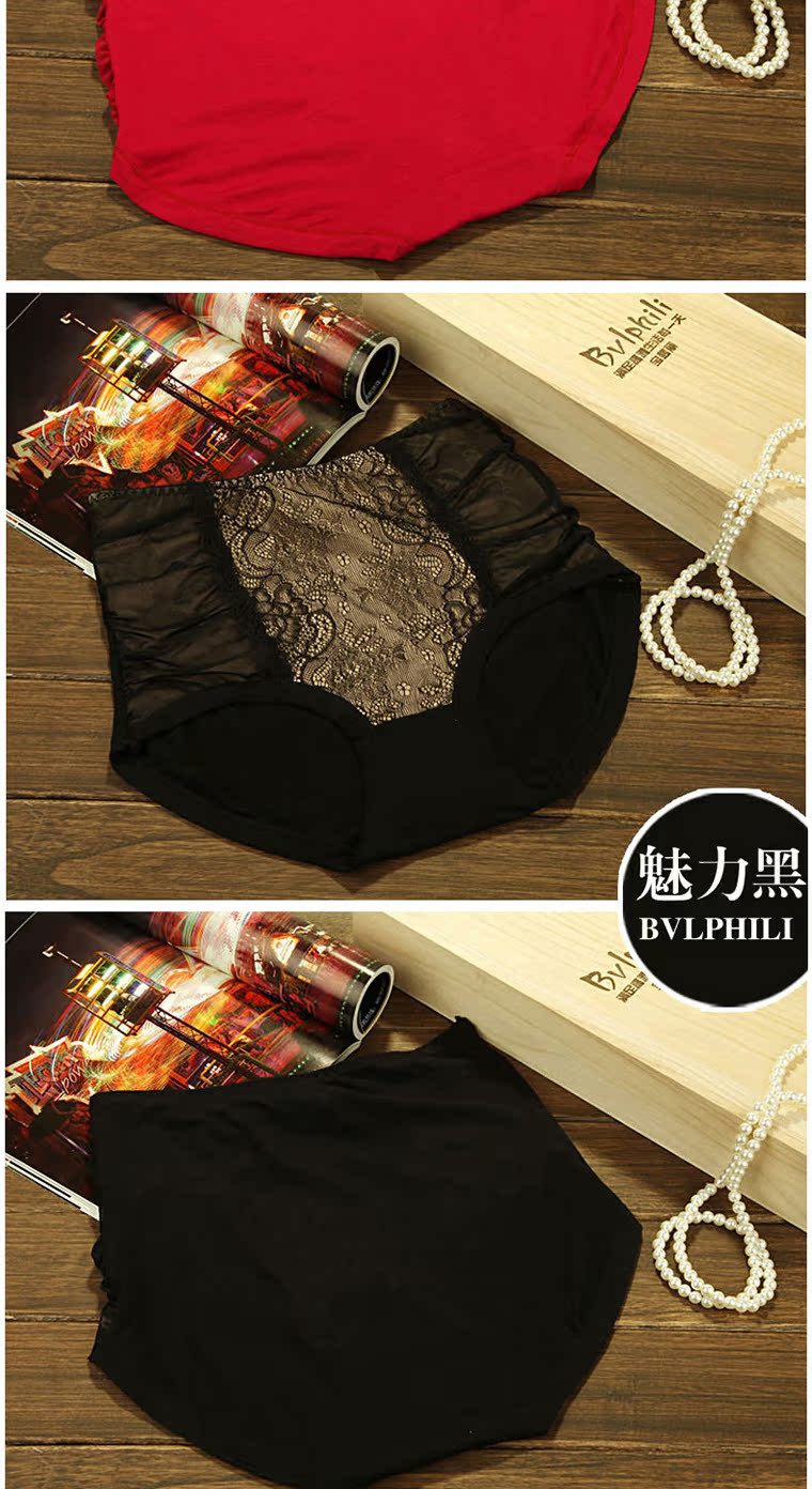 BVLPHILI高腰蕾丝女内裤遮小肚腩性感内裤大码女内裤三角裤2条装