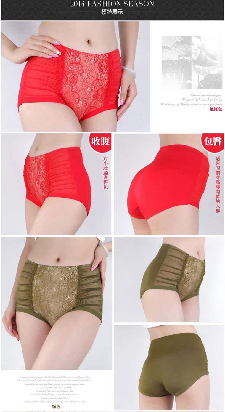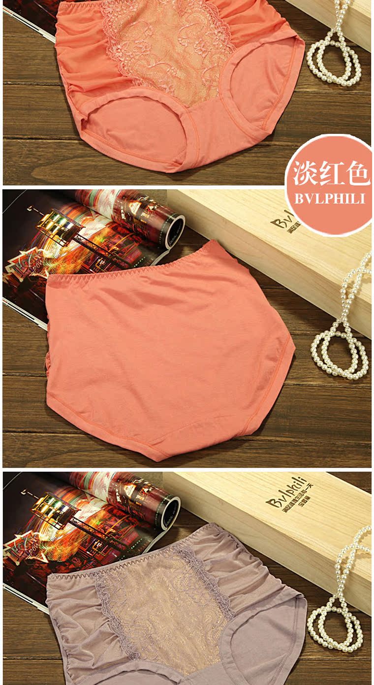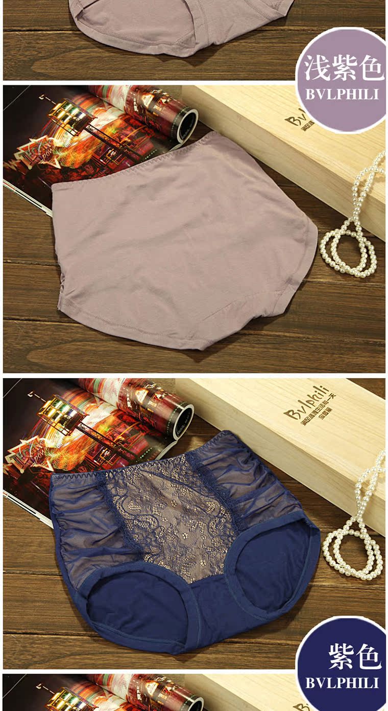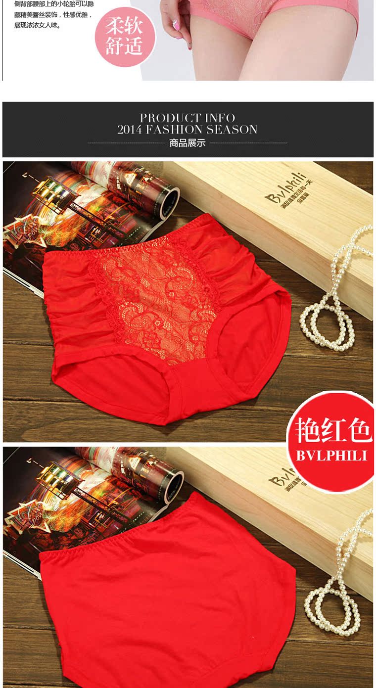 BVLPHILI高腰蕾丝女内裤遮小肚腩性感内裤大码女内裤三角裤2条装