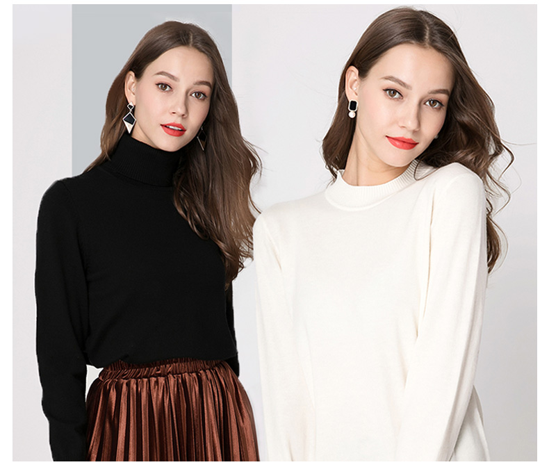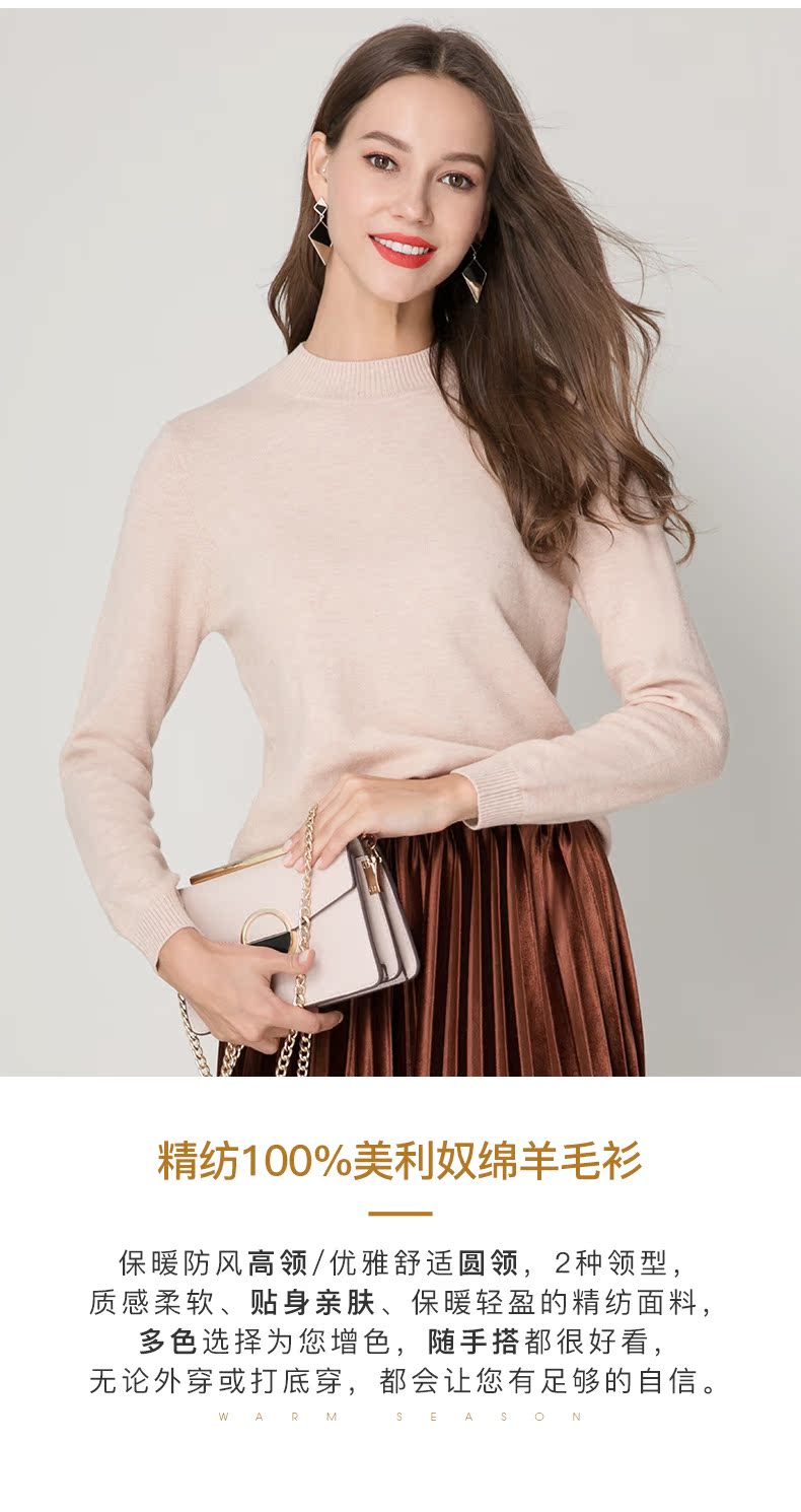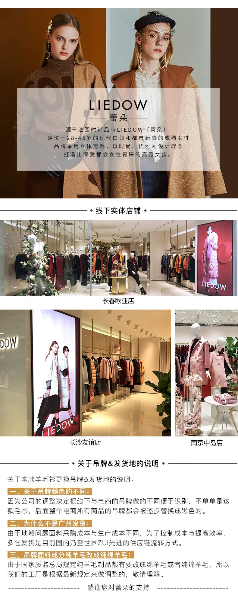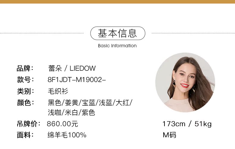 LIEDOW/蕾朵2019冬新款打底针织衫修身显瘦套头针织衫女 100%羊毛