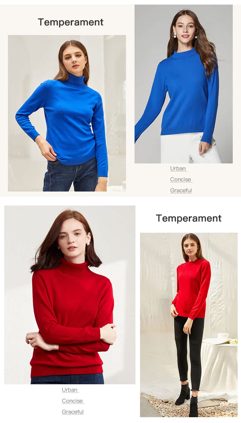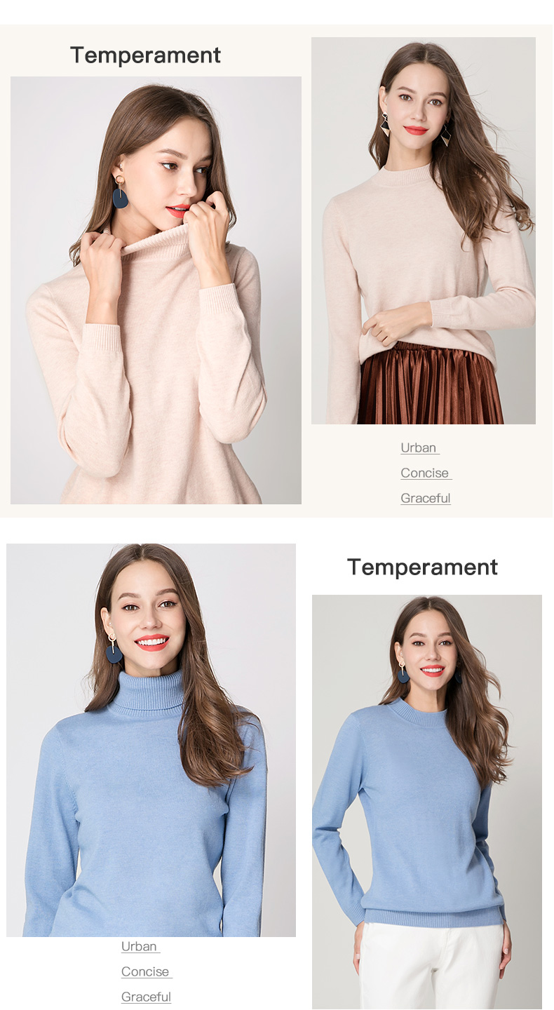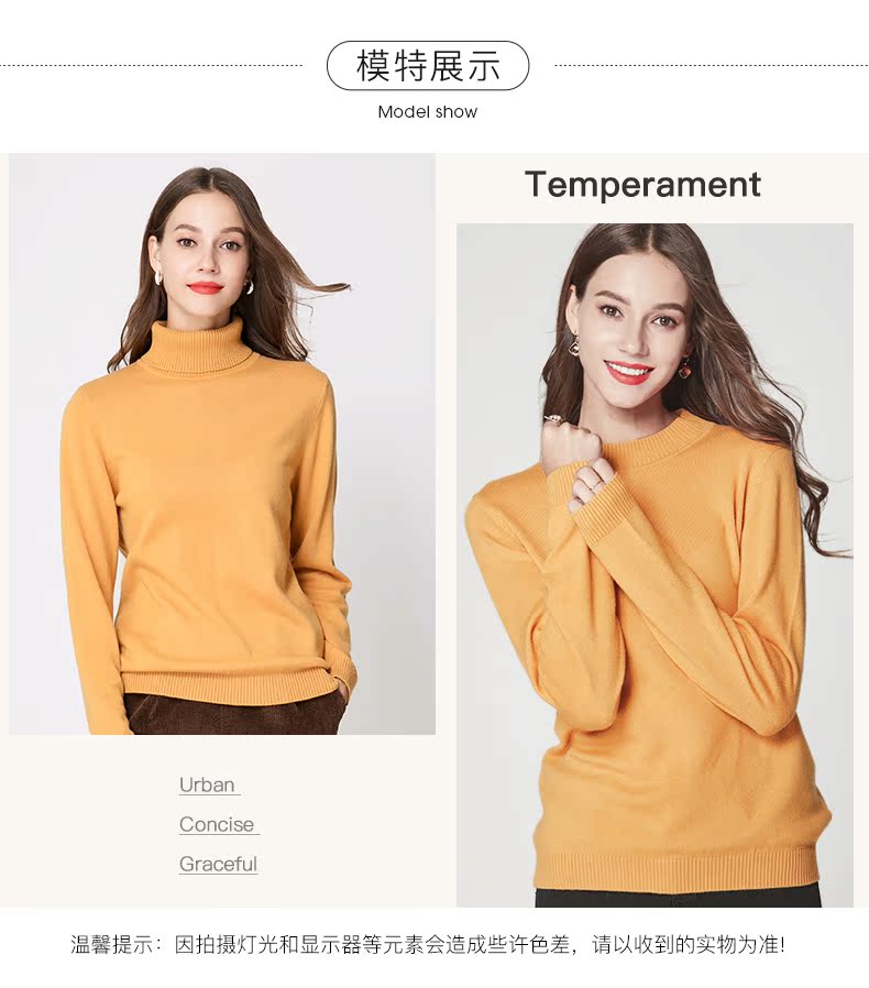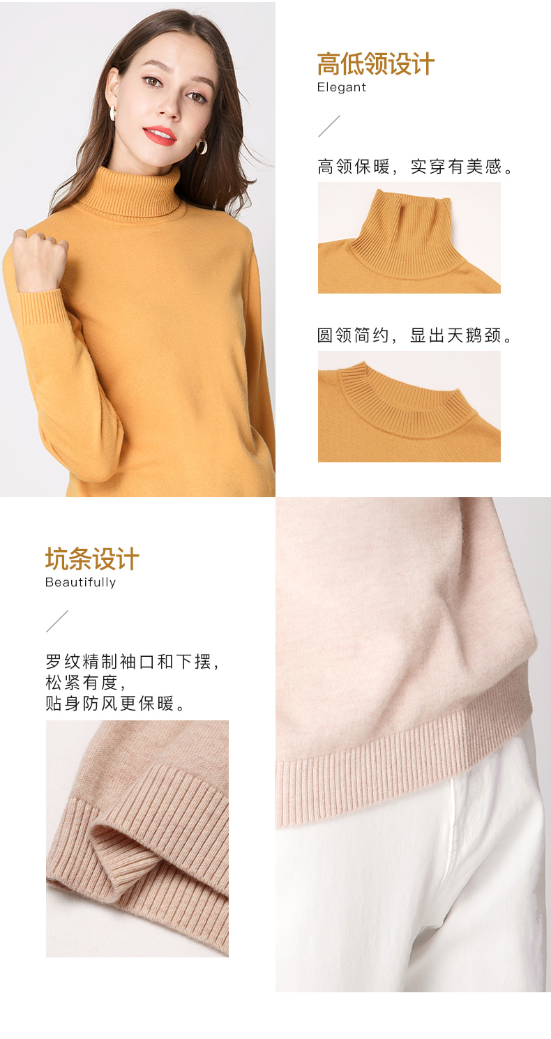 LIEDOW/蕾朵2019冬新款打底针织衫修身显瘦套头针织衫女 100%羊毛
