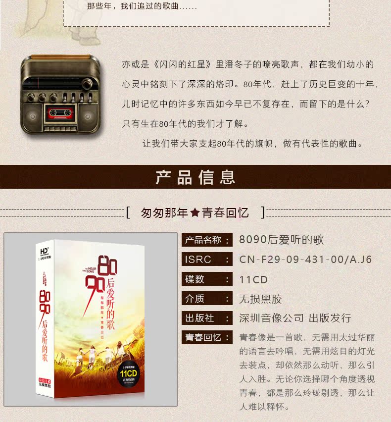 8090后爱听的歌,10CD,无损黑胶,立体电音,耐磨耐听,为您呈现最纯汇集华语乐坛经典老歌精选,立体电音,耐磨耐听,为您呈现最纯正的音质,勾起你难忘的回忆,回味过去的美好时光,致我们已经失去的青春