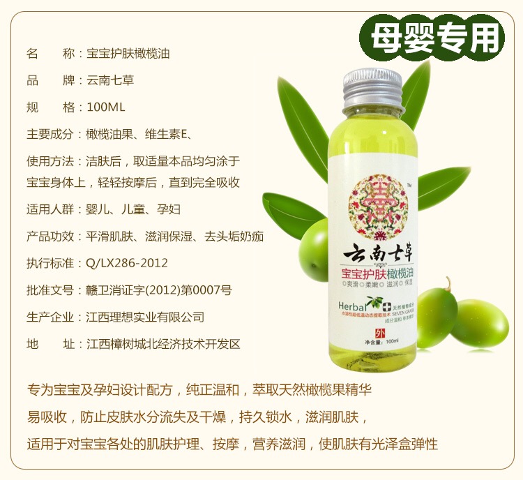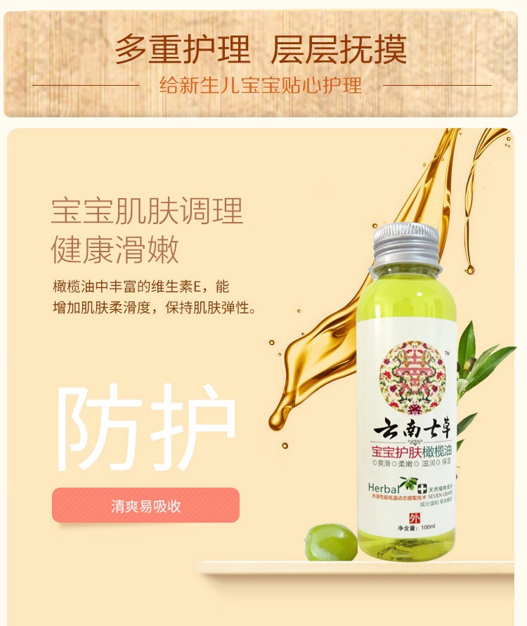 宝宝抚触润肤橄榄油新生婴儿护肤孕妇按摩精油云南七草正品