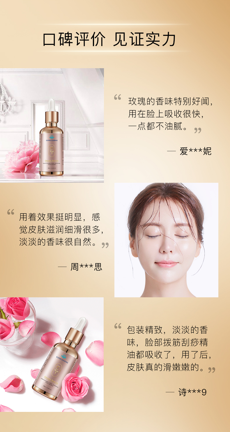 玫瑰面部精油按摩刮痧补水保湿提亮肤色抗皱淡斑紧致收缩毛孔女