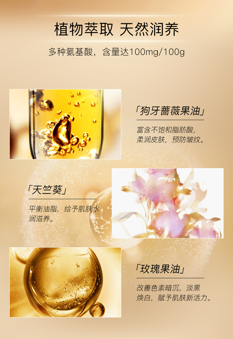 新加坡原装进口,玫瑰果富含多种维他命C果酸,帮助补水从而改善暗沉肌肤,美白淡斑,软化表面受损肌肤,推动细胞更新,修护痘印,去皱纹细纹,补水保湿,持久养肤,改善肌肤松弛,面部肌肤变得紧实光