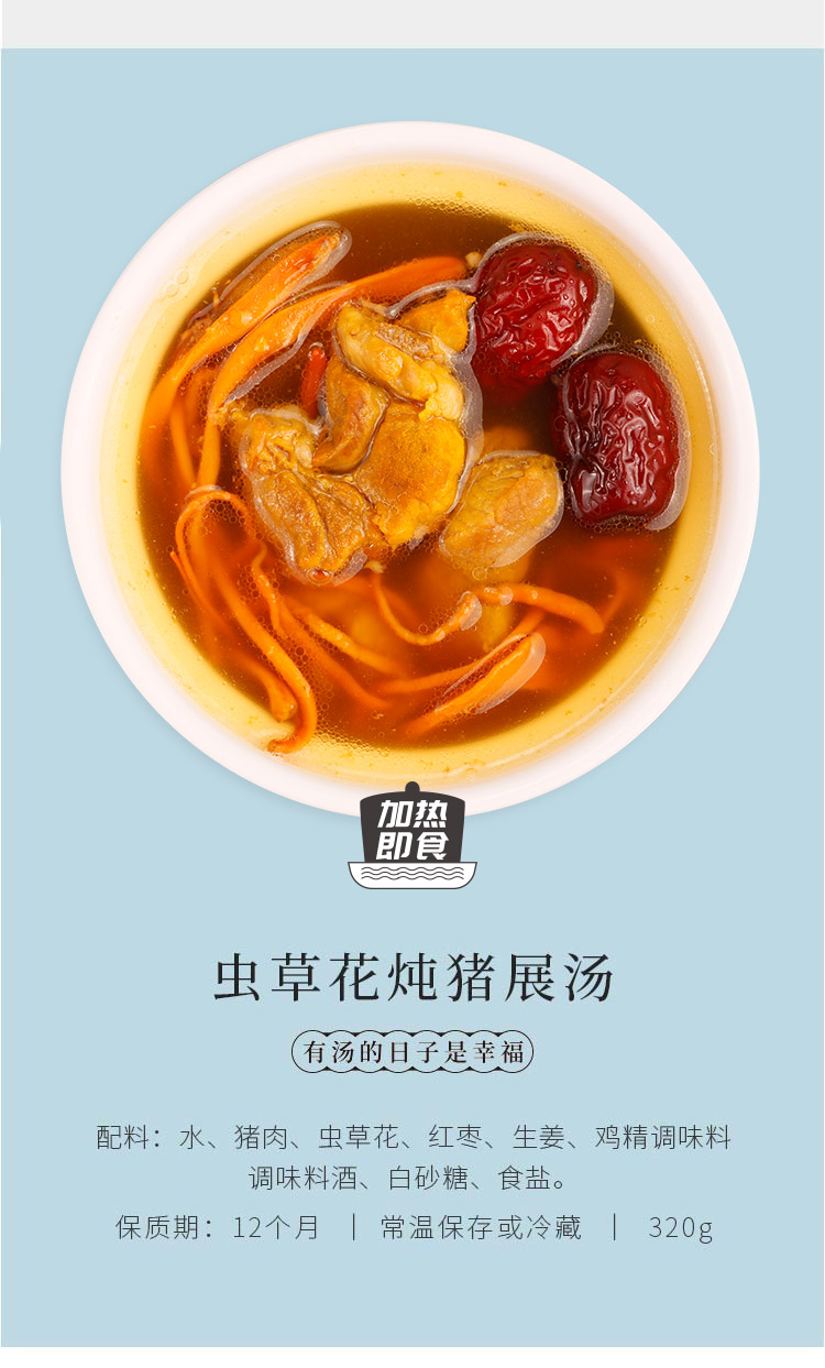 一杯汤EasySoup虫草花炖猪展汤加热即食网红汤品代餐白领学生320g