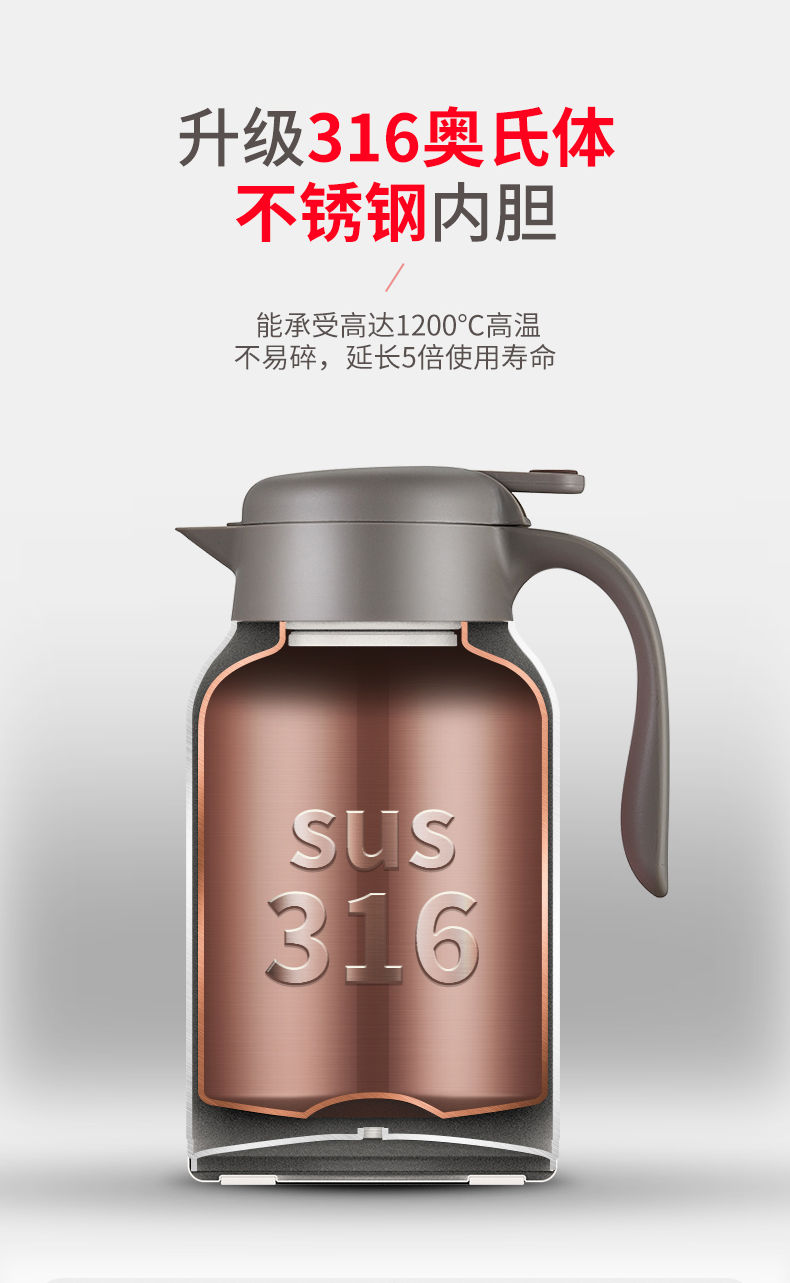 凯霖保温壶家用保温水壶大容量热水瓶316不锈钢内胆热水壶暖壶2升