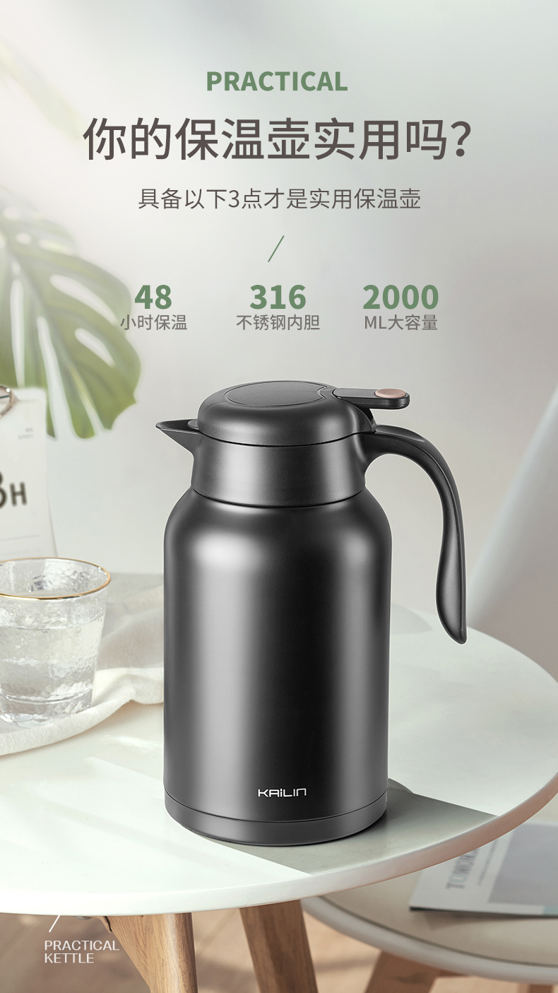 凯霖保温壶家用保温水壶,2升大容量,316不锈钢材质,告别频繁起身倒水,赠运费险