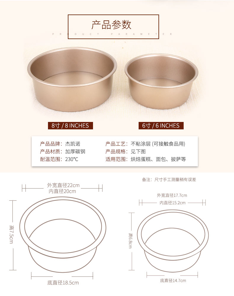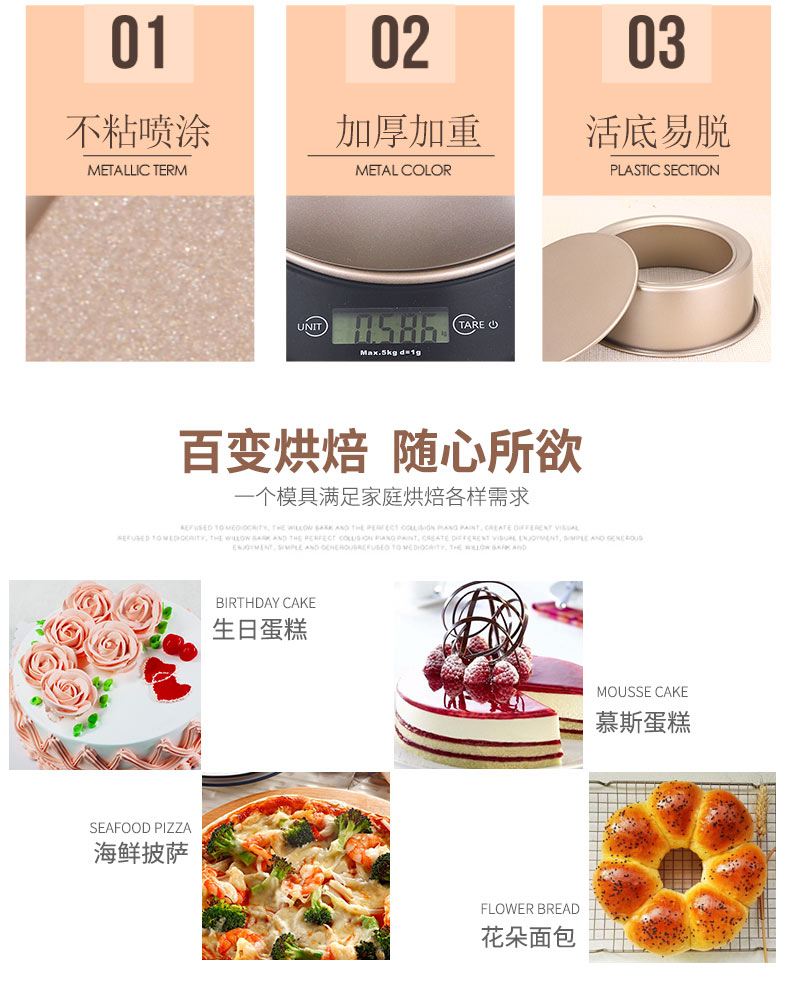 【加厚加重】戚风蛋糕模具烘焙工具家用活底慕斯烘培磨具6寸8寸