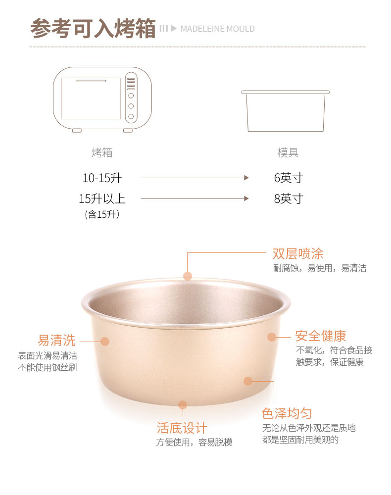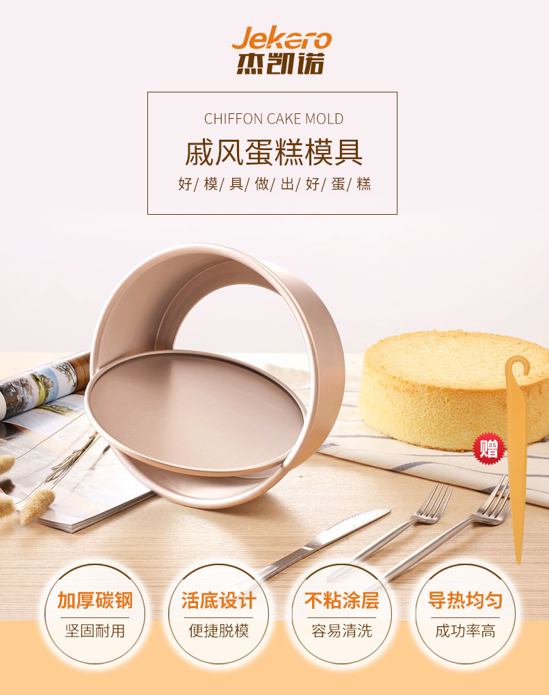 戚风蛋糕模具圆形6寸8寸10寸烘焙工具,加厚铝合金,坚固耐用,阳极处理,安全健康,活低设计,容易脱模【赠运费险】