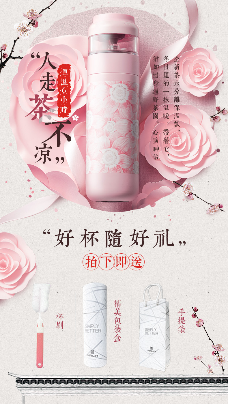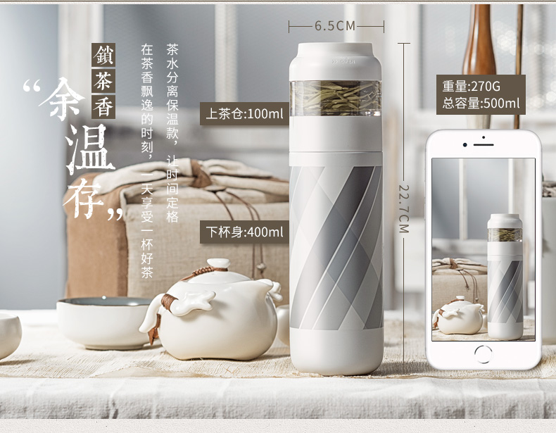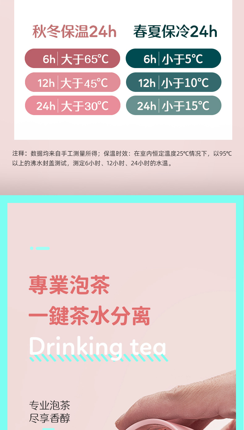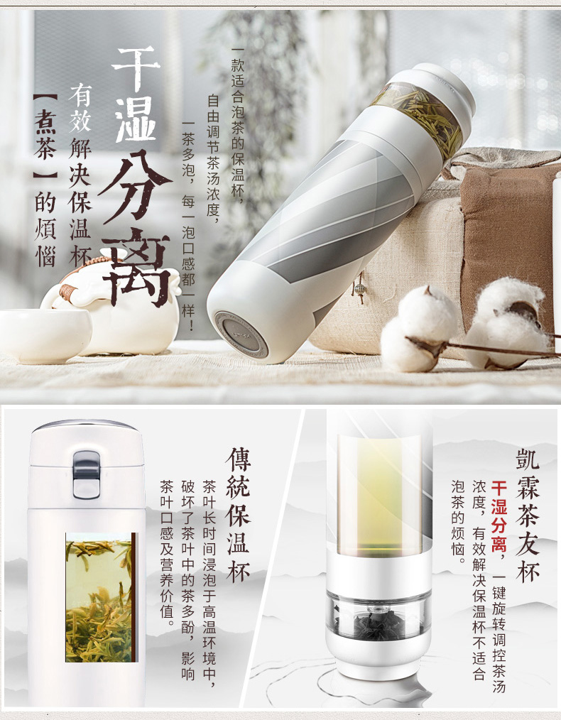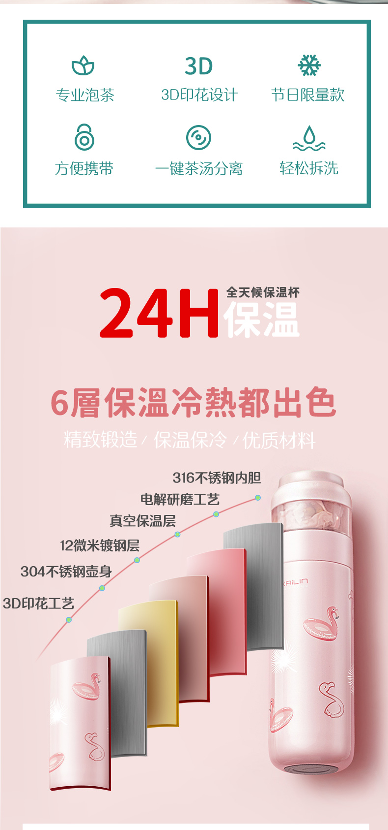 凯霖保温杯女茶水分离泡茶杯316,茶水分离,进口材质,真空保温,便携泡茶,
