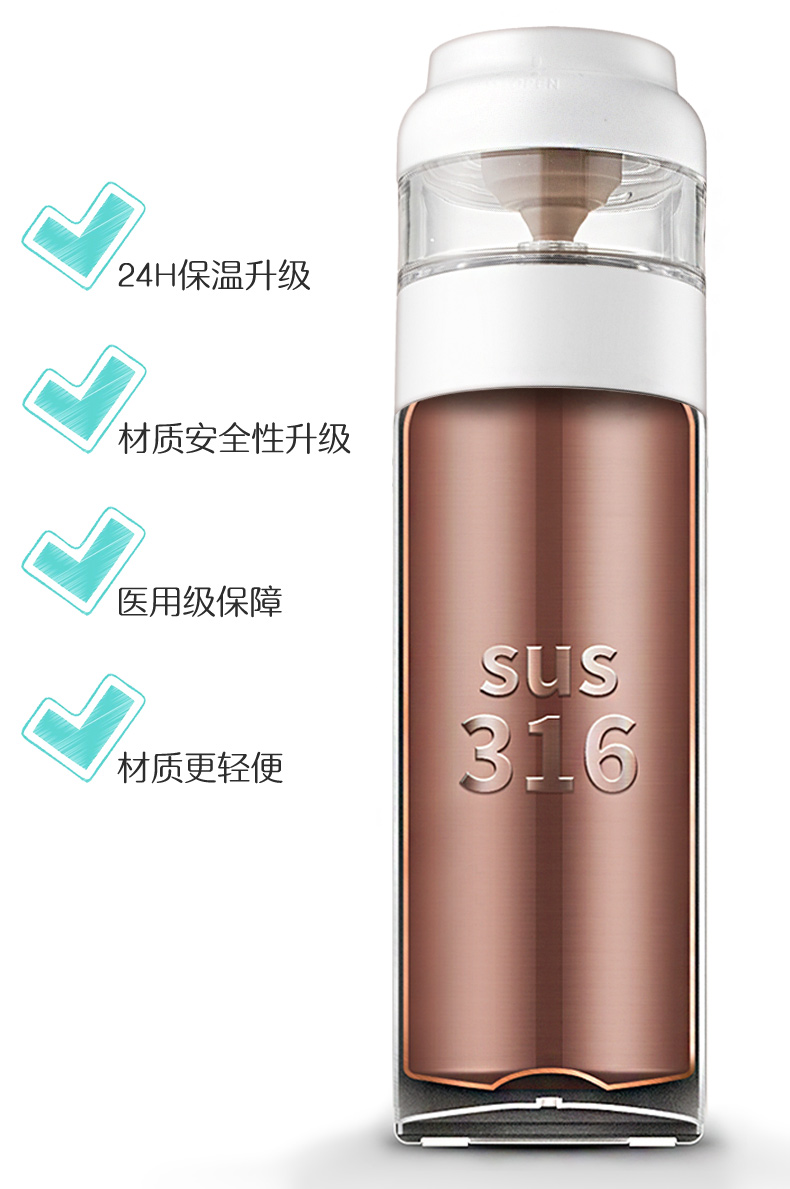 凯霖保温杯女茶水分离泡茶杯316便携水杯子可爱简约女学生大容量