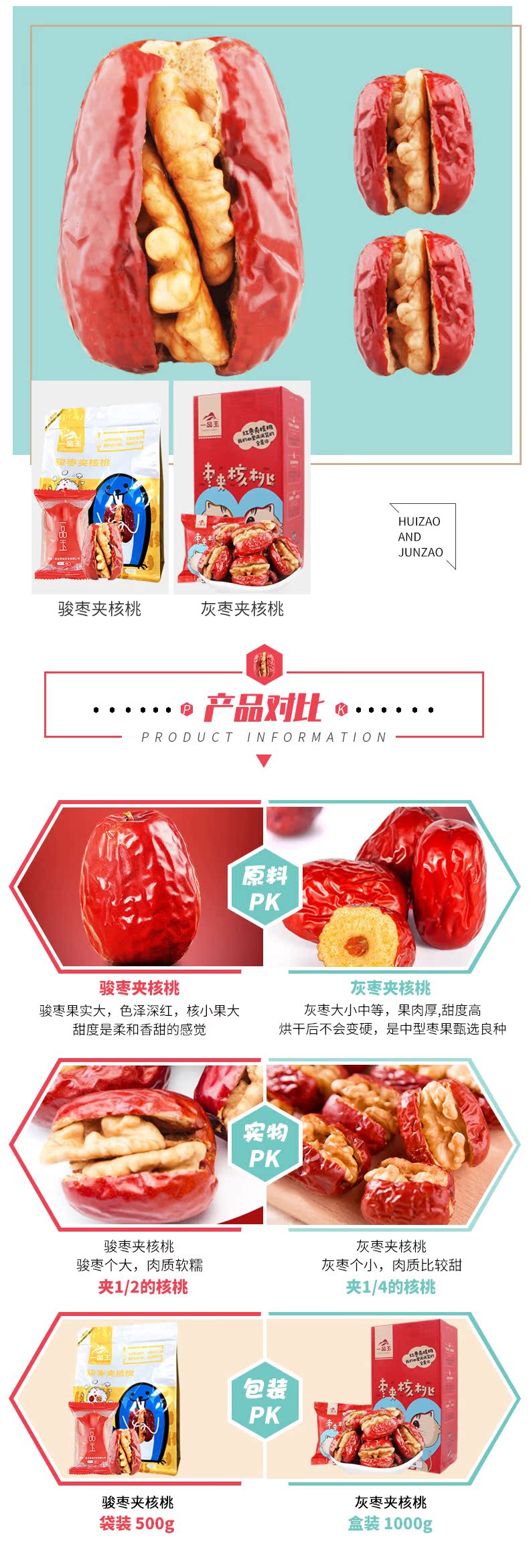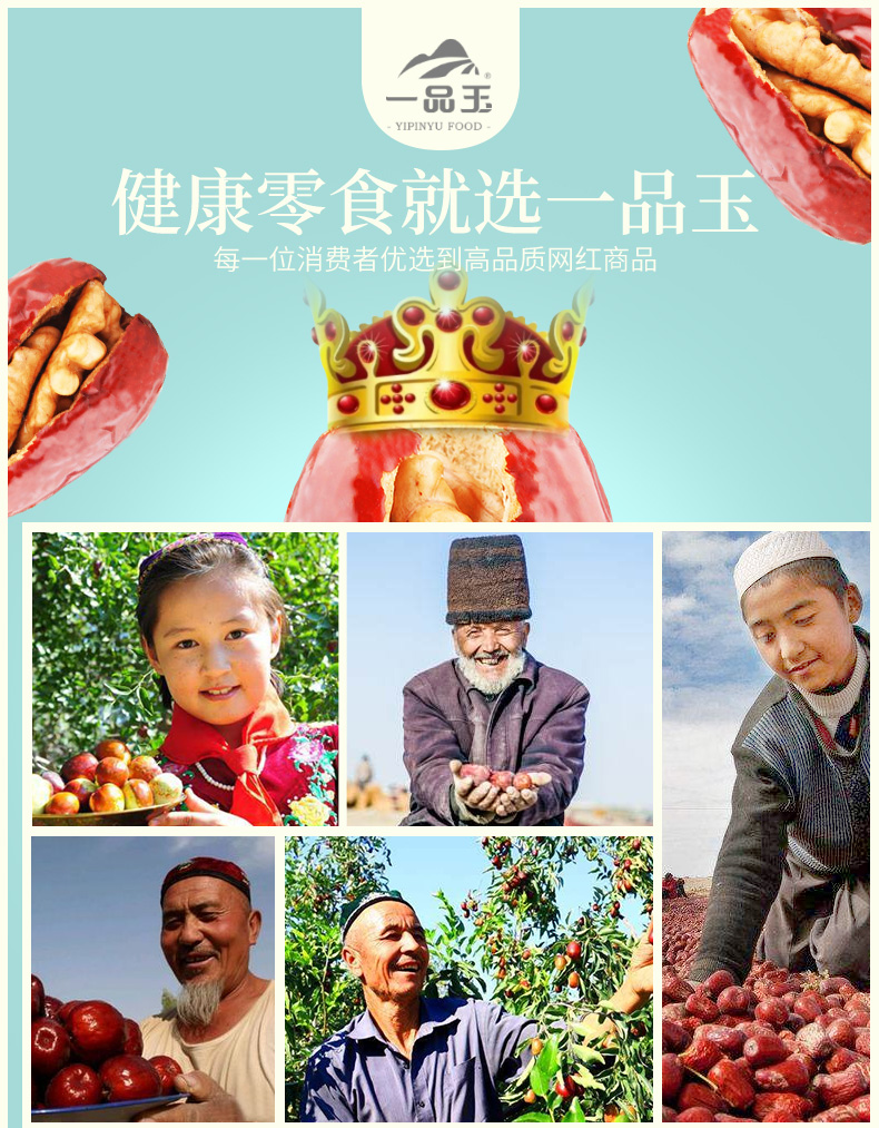 一品玉枣夹核桃仁500g*2袋和田玉大枣新疆特级2斤灰枣夹核桃礼盒