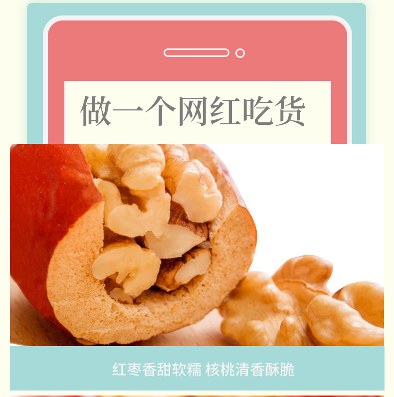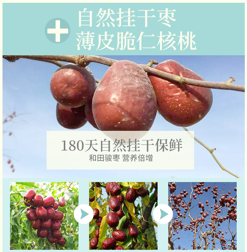 七重锁鲜,免洗即食、鲜甜可口!搭配薄皮核桃,双重营养美味!做枣夹核桃我们更专注,每个独立包装,个头大,软硬适中,好吃的停不下来!赶紧下手吧!