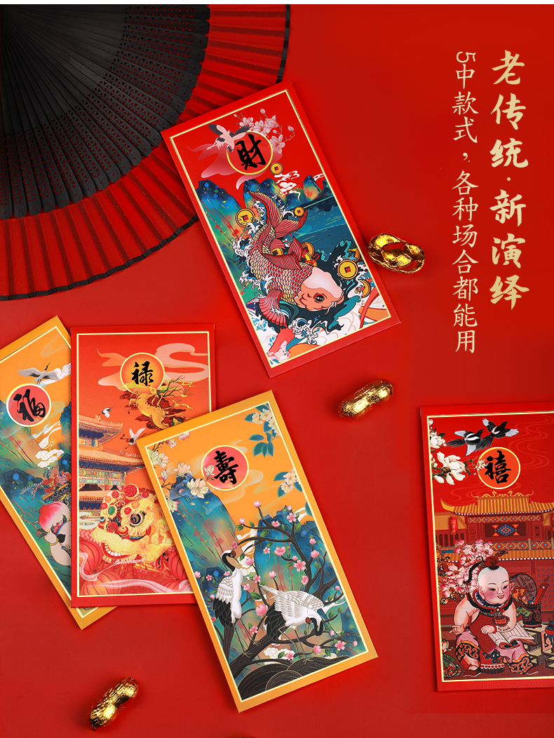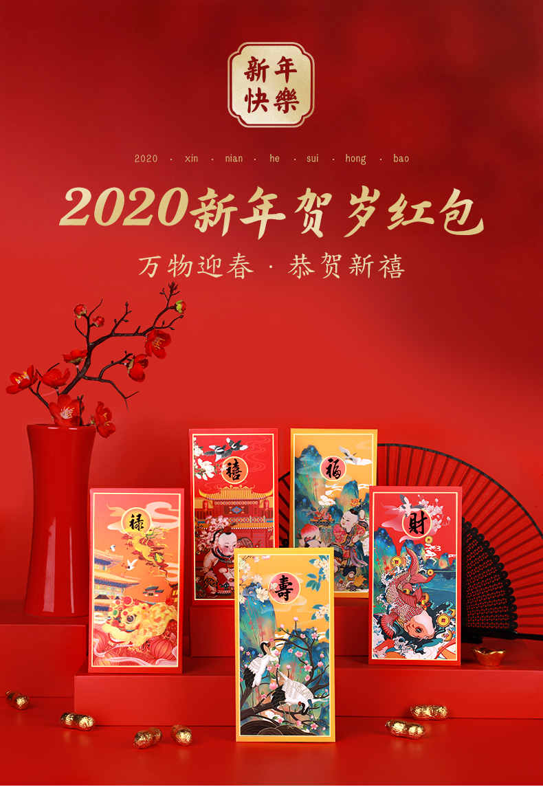 2020福禄寿喜才新年快乐春节利是封,中国风创意定制,印刷图案清晰,旺上加贵,大气包装送礼有面子,送长辈,送客户,暧心选择!自主设计,年味十足,支持企业定制!