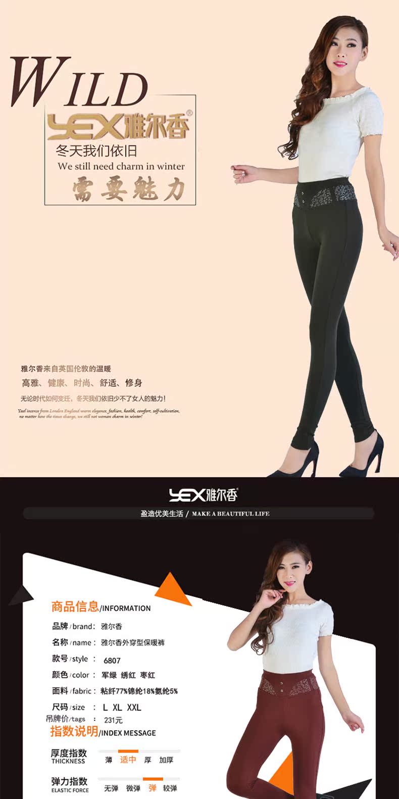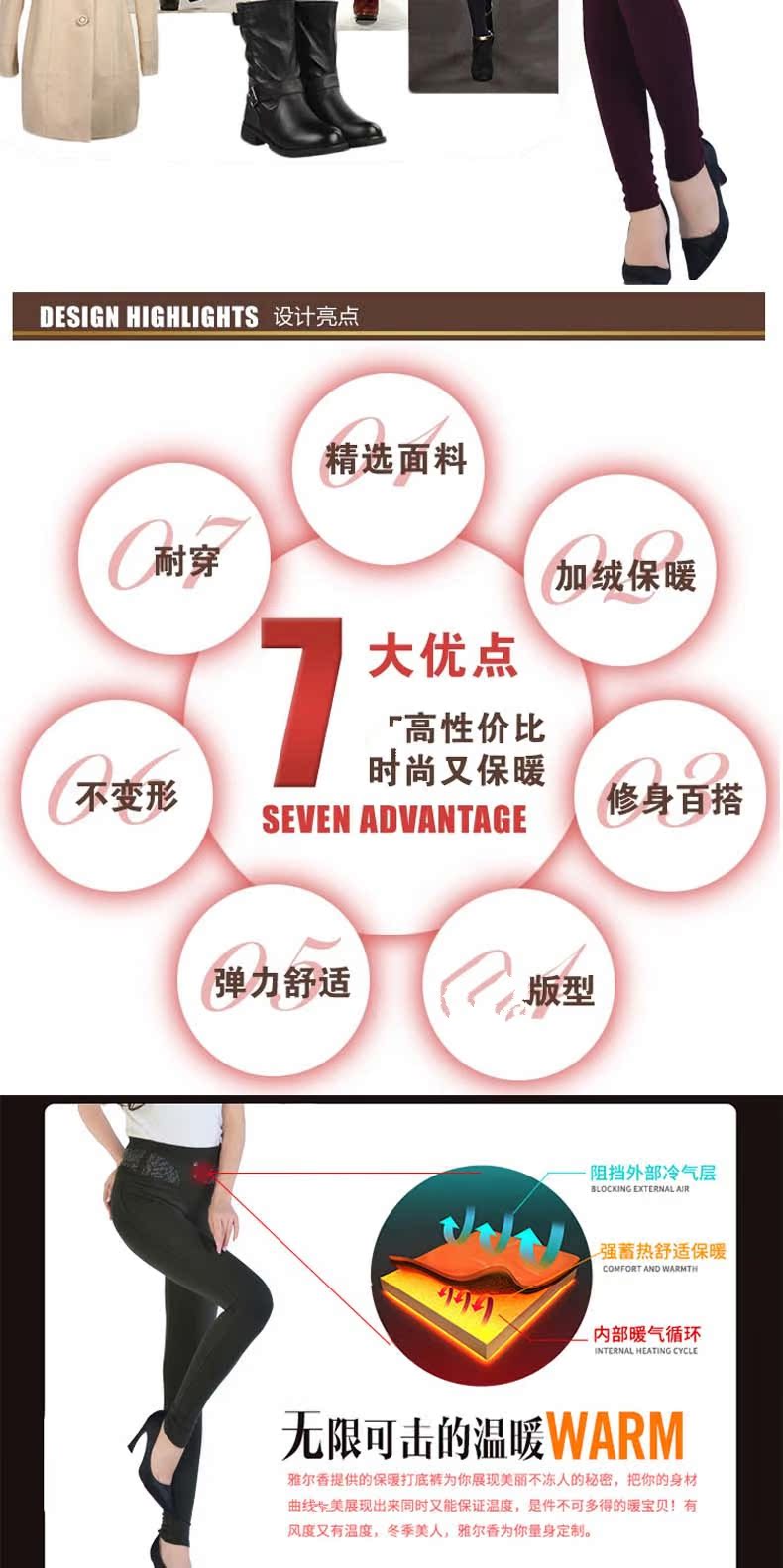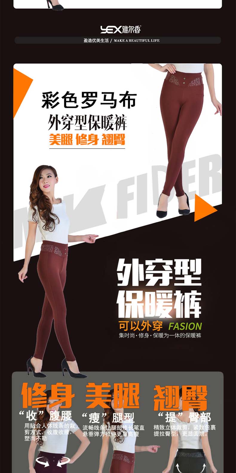 雅尔香 时尚外穿彩色罗马布高弹打底铅笔保暖小脚裤裤皮 专柜正品