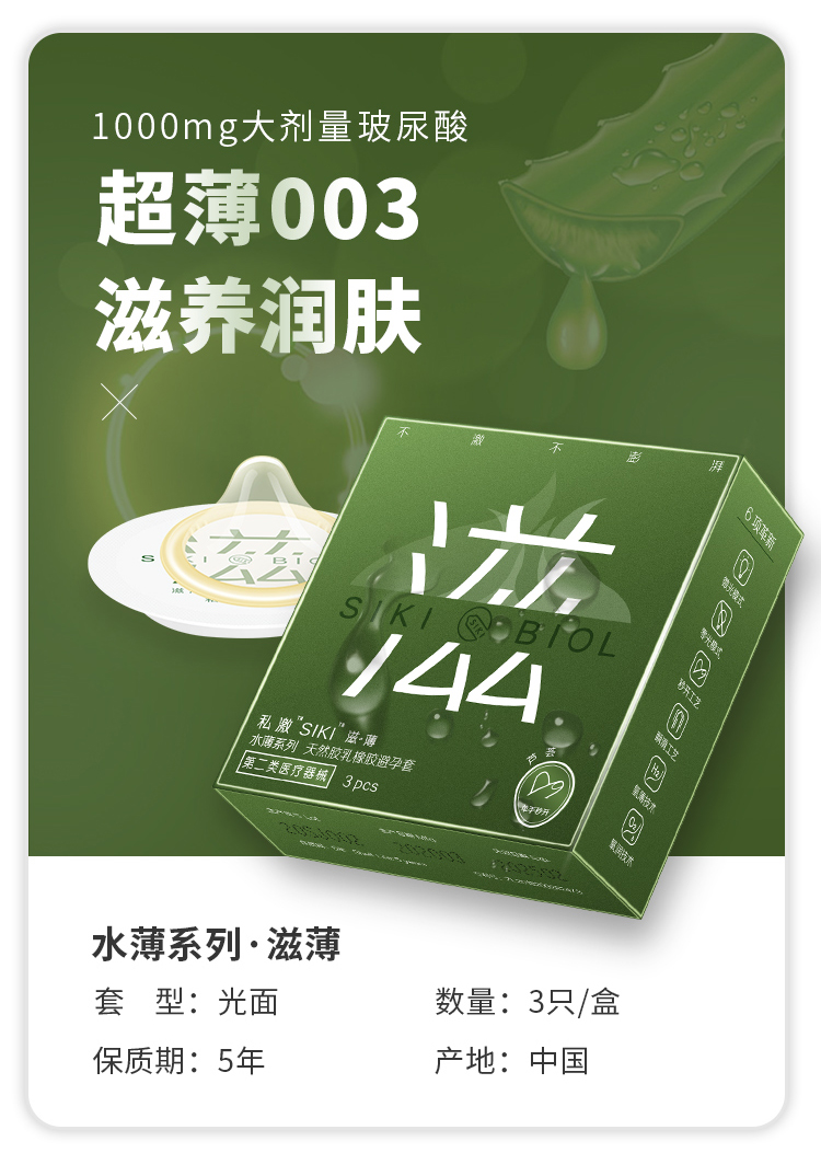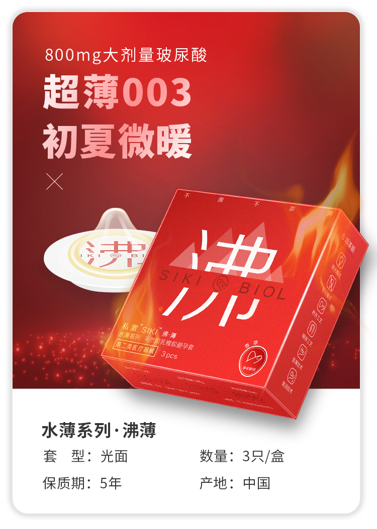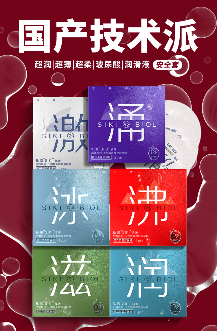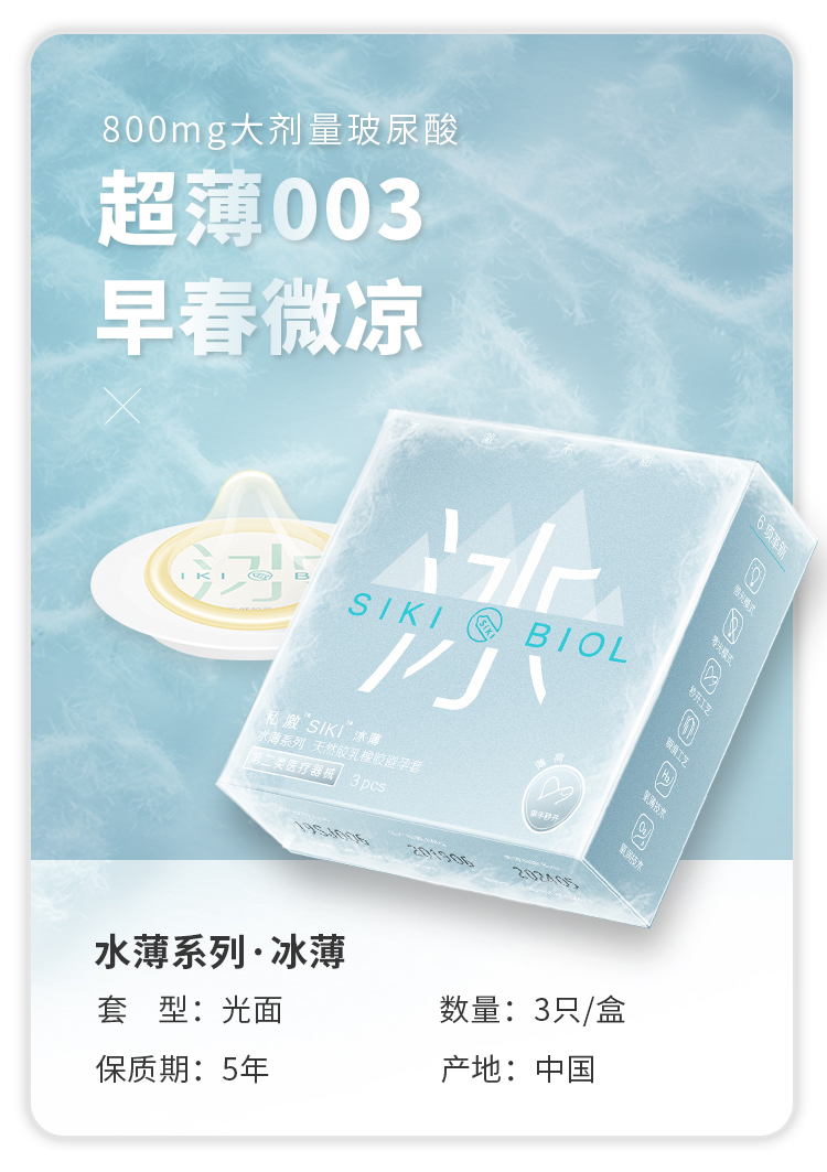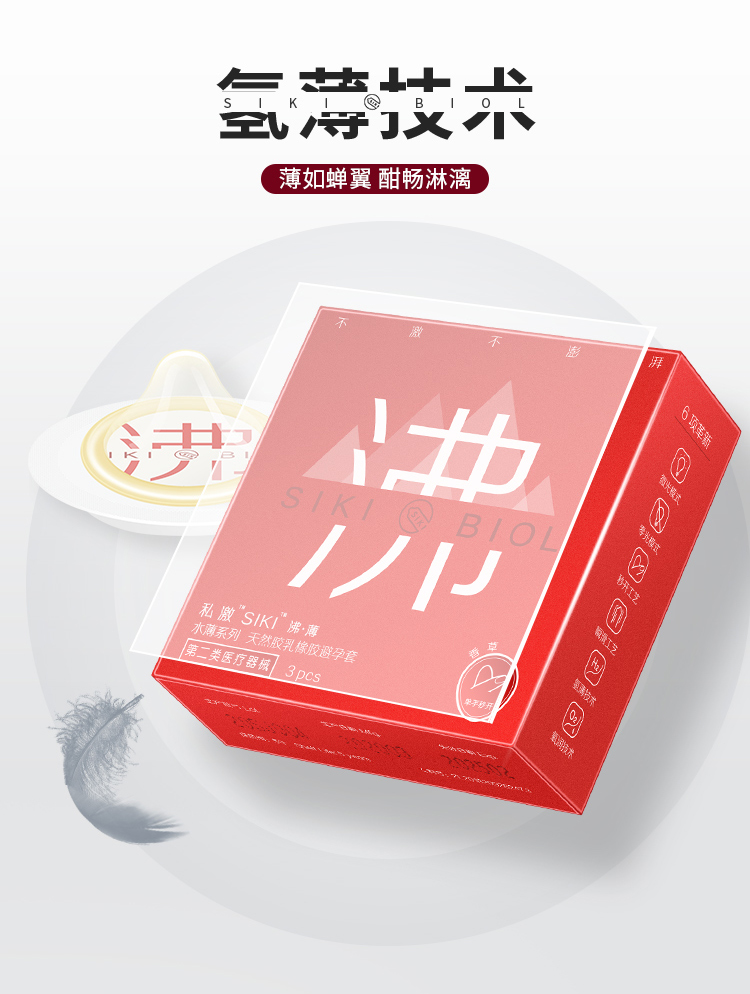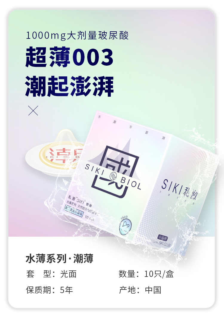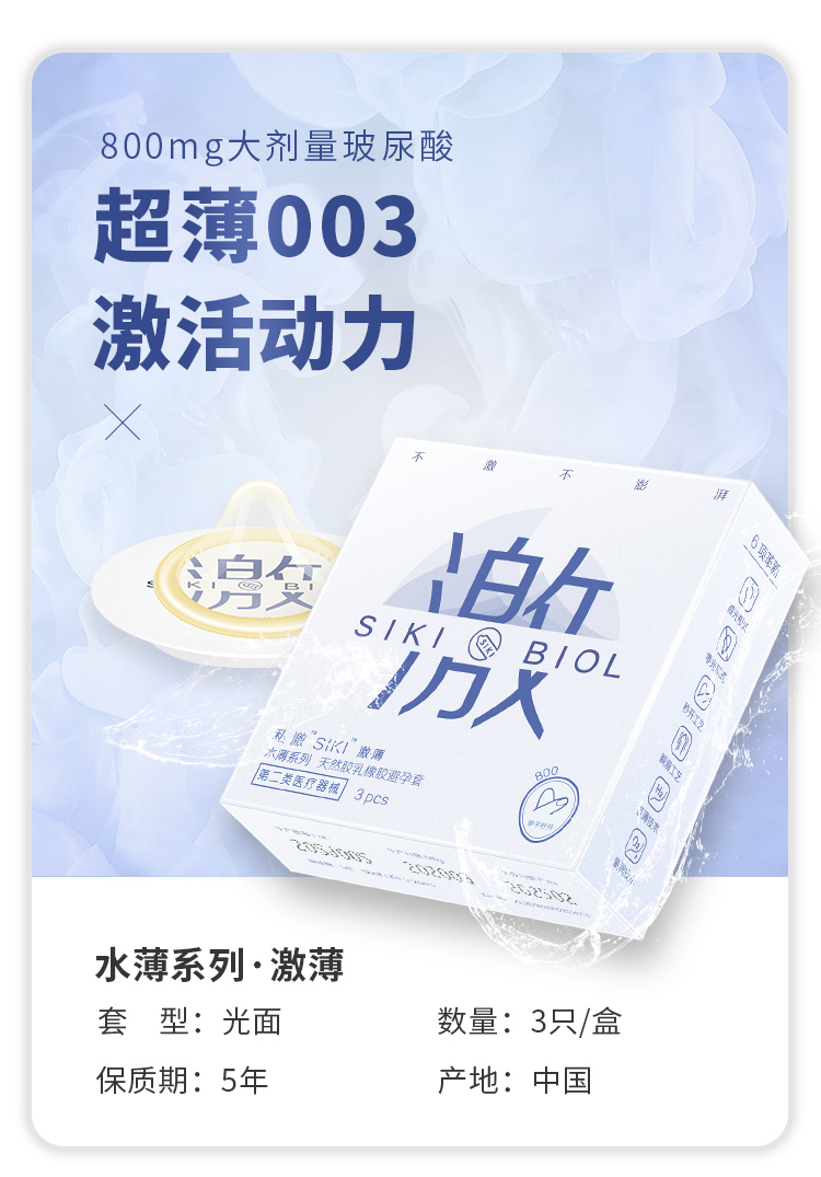 SIKI私激玻尿酸避孕套超薄0.03持久男用安全套计生多小盒装中号sk