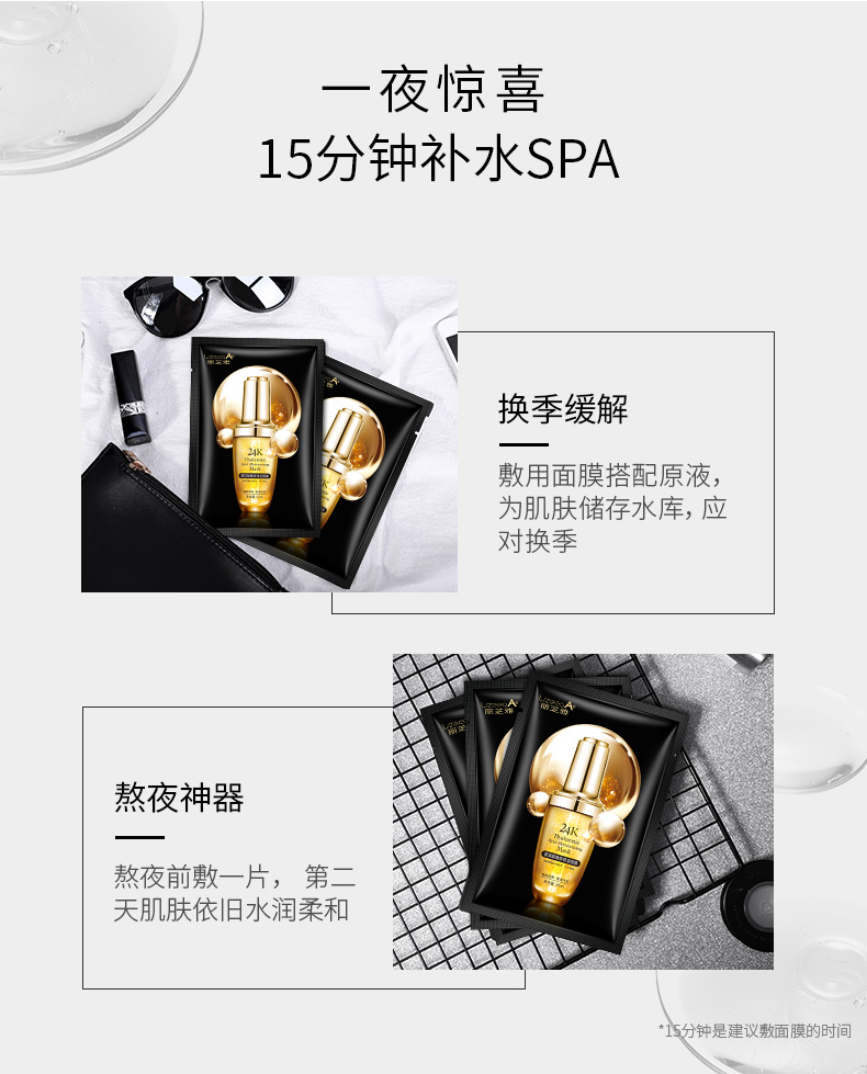 第2件9元!24K黄金面膜玻尿酸补水保湿提亮肤色女男正品专用