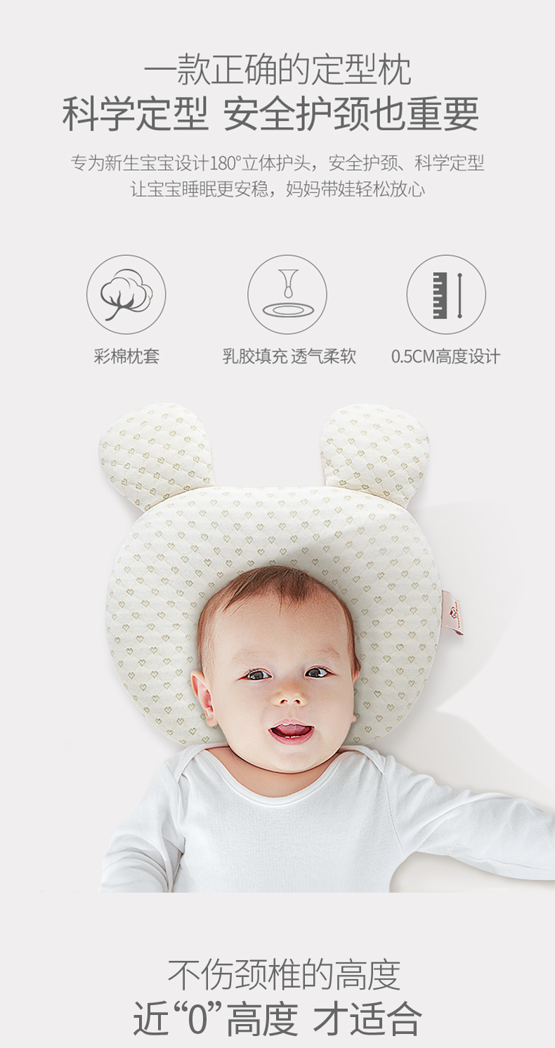 婴儿定型枕,刚出生就可以用的枕头,适合头型的凹槽设计,防螨抑菌的乳胶颗粒枕芯,让宝宝睡出健康头型,防止偏头情况出现。