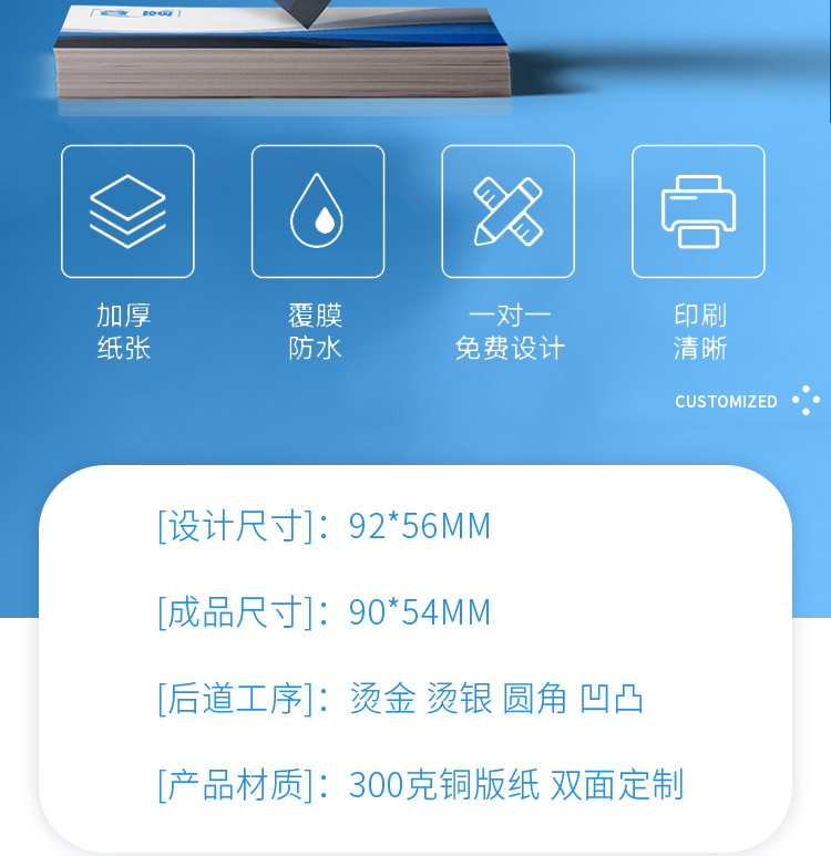 拥有一张属于自己名片:创意定制,一对一服务,工厂直销,量大价格可谈,质量保障,包君满意,免费开票