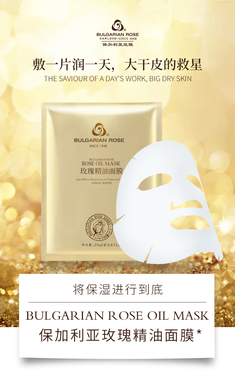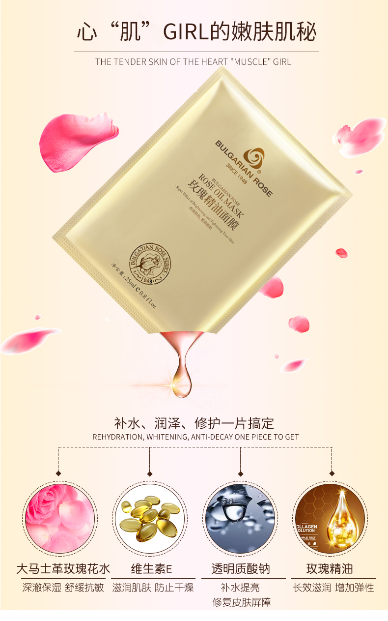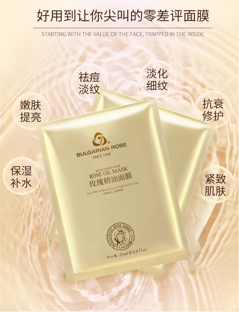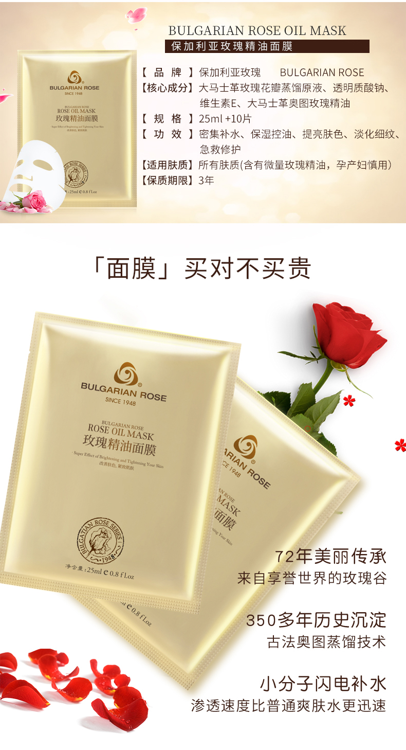 保加利亚玫瑰皇后精油面膜补水面膜保湿修护紧致正品【10片/盒】