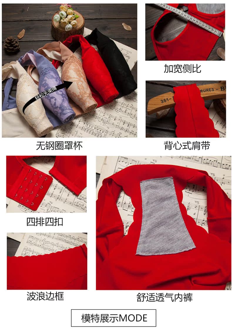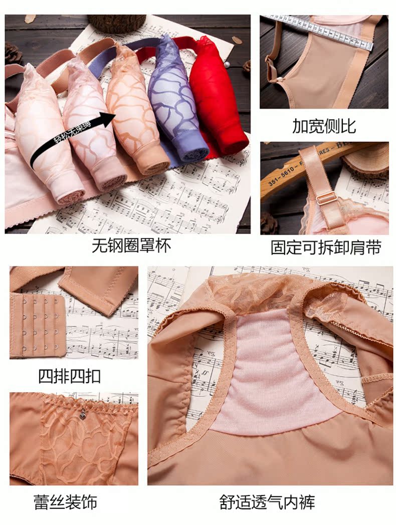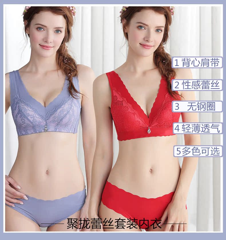 内衣套装少女文胸聚拢舒适无钢圈收副乳性感小胸上托加厚款胸罩