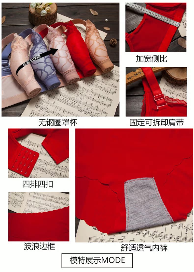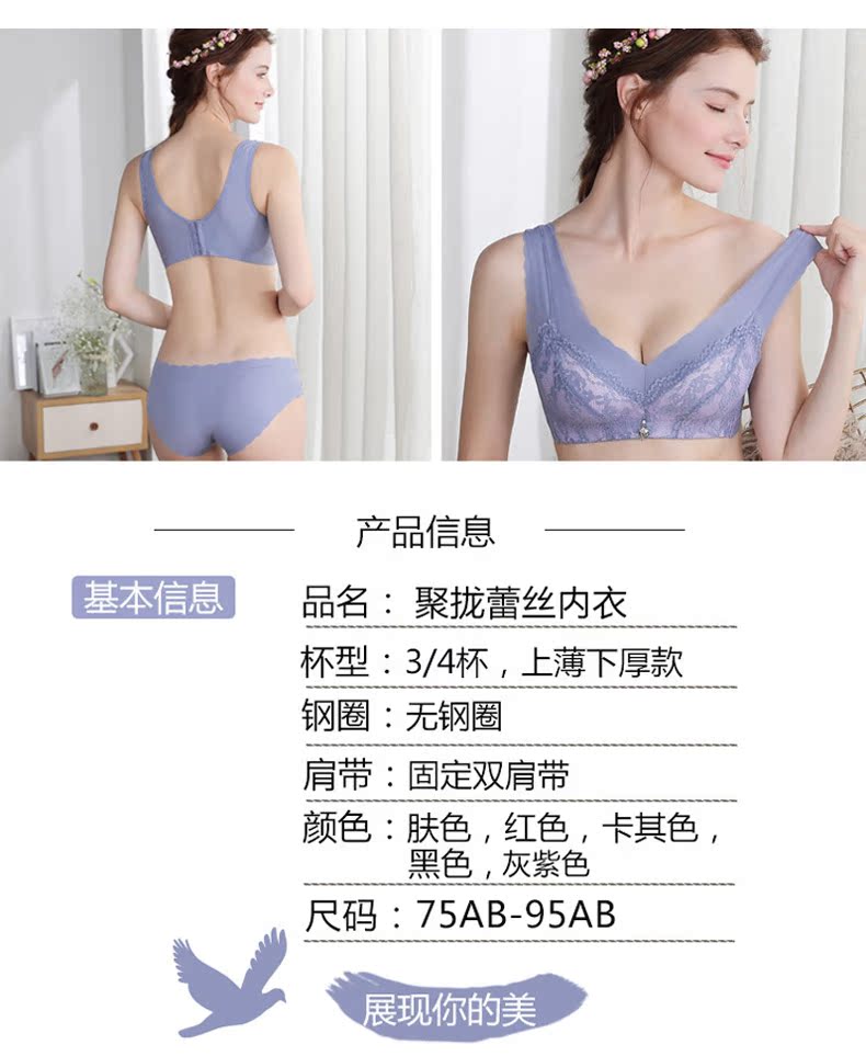 【集中聚拢,性感迷人】超值两件套,简约无痕面料,搭配新颖的设计,穿出不一样的姿态美!无钢圈轻盈不压迫,超少女心的色系,让你一眼就爱上,贴肤不空杯,穿出傲人身姿,精致女人味,从这里开始~