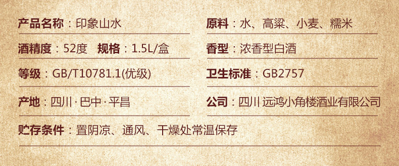小角楼 52度浓香型印象山水1500ml大坛粮食酒礼盒装白酒