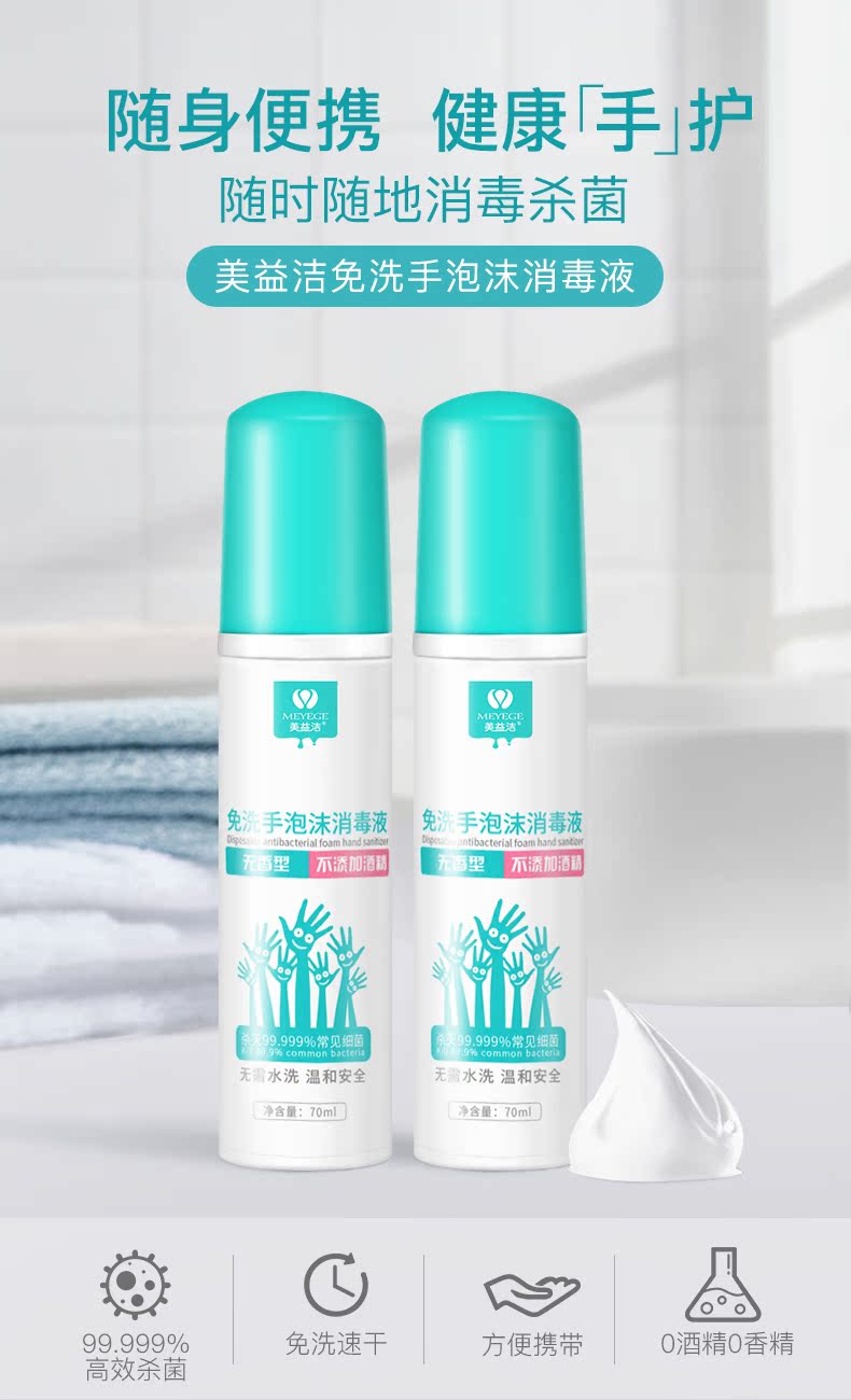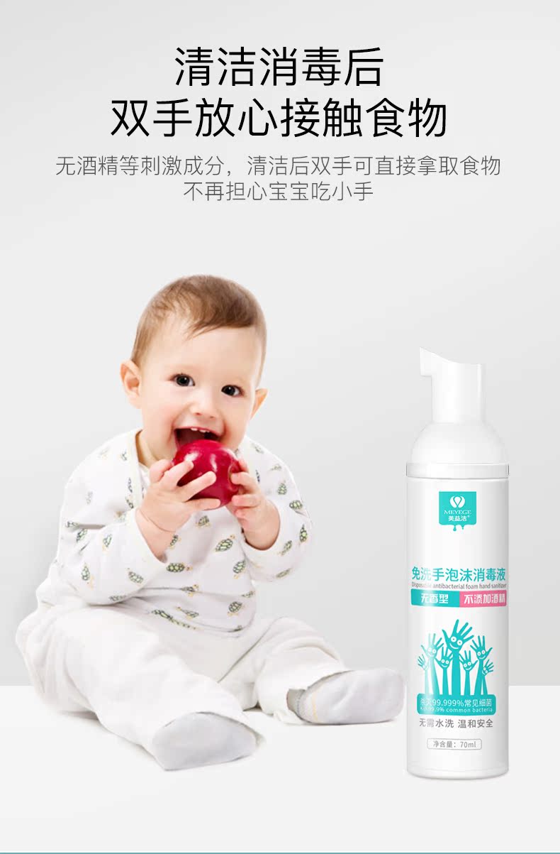 美益洁婴儿洗手液宝宝专用消毒免洗杀菌抑菌泡沫随身便携迷你70ml