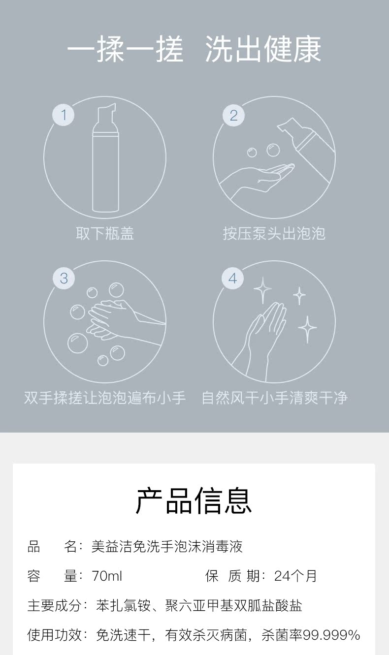 美益洁抑菌护手洗手液,宝宝儿童孕妇均可使用,优选食品用消毒成分,无需水洗,10秒后速干不粘手,呵护你的健康【赠运费险】