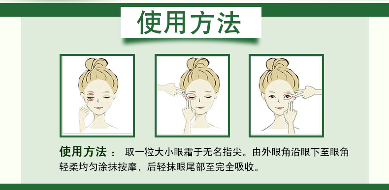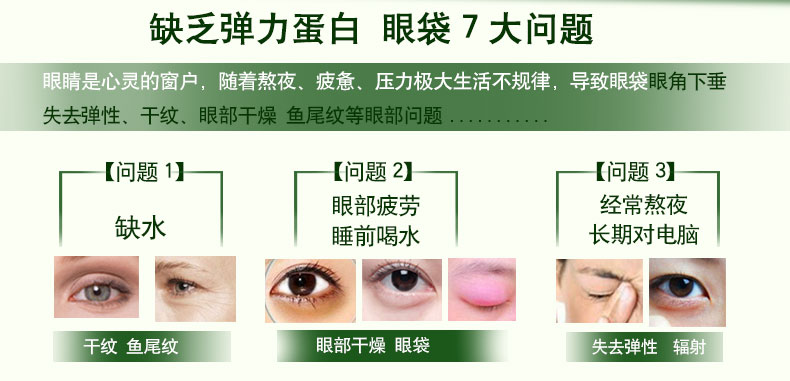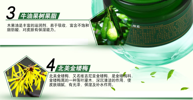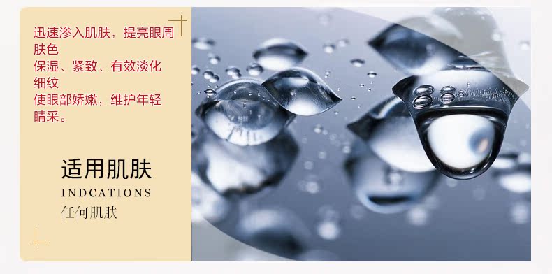 保湿滋润,形成保护膜,补充细胞水分,抚平细纹,淡化黑眼圈,改善眼袋,修护受损肌肤,击退黑色素,缓解眼袋,日夜护眼,效果翻倍!