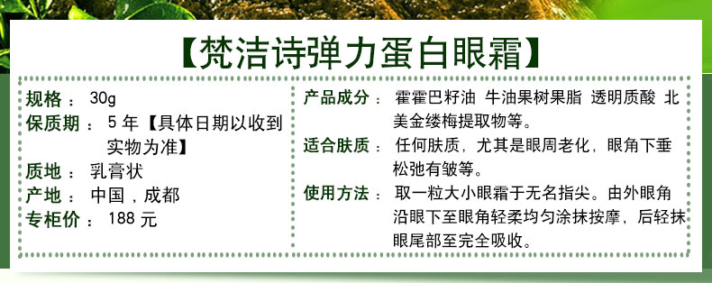 梵洁诗弹力蛋白眼霜抗皱紧致补水20-25-30-50岁旗舰官网正品店女