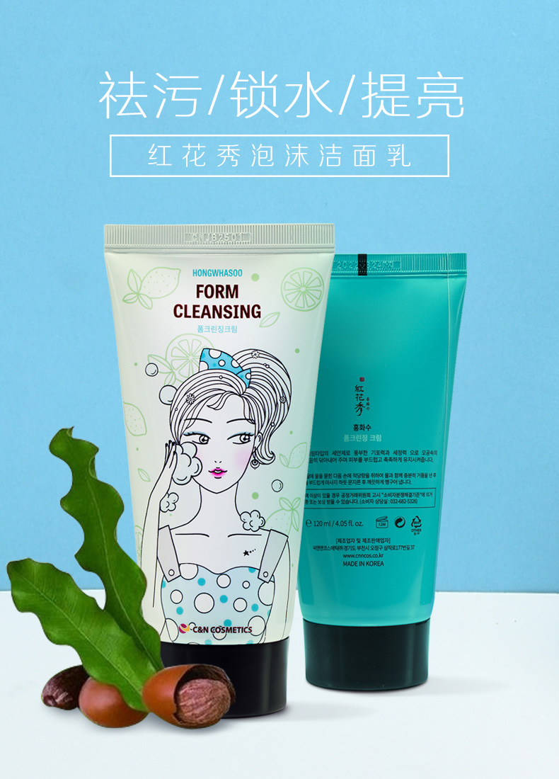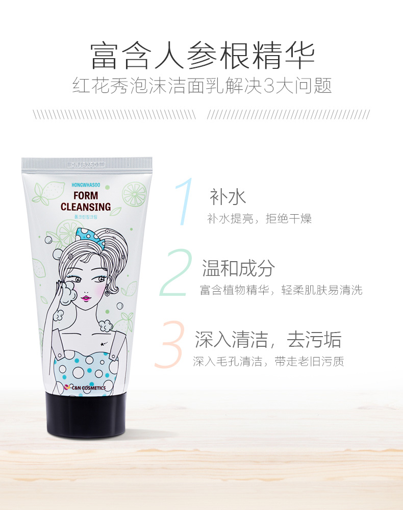 红花秀泡沫洁面乳女既刻清洁毛孔污浊植物精萃洗面奶120ml*支